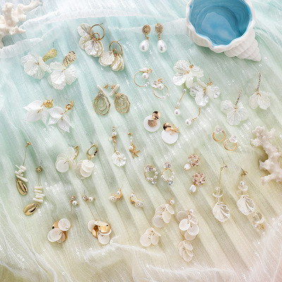 [1 # 11383] ▼ Earrings approximately 4.2cm in total length and shells approximately 2cm in length