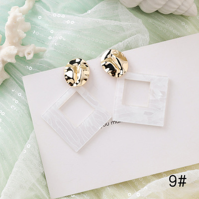 [9 # 10080] ▼ Earrings are about 7.3cm long, metal disc size is about 2.4 * 2cm, square sides are about 4cm long