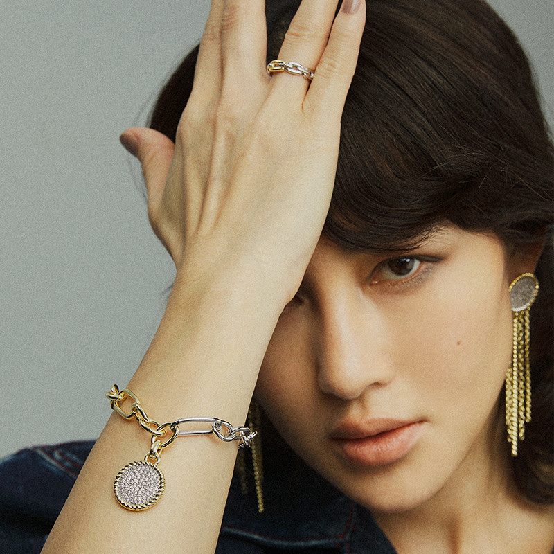 Series: Chen Ran joint zircon seriesName: Metal braided zircon ringSize: Inner diameter approximately 1.7cmColor: goldenMaterial: gold-plated, artificial zircon
