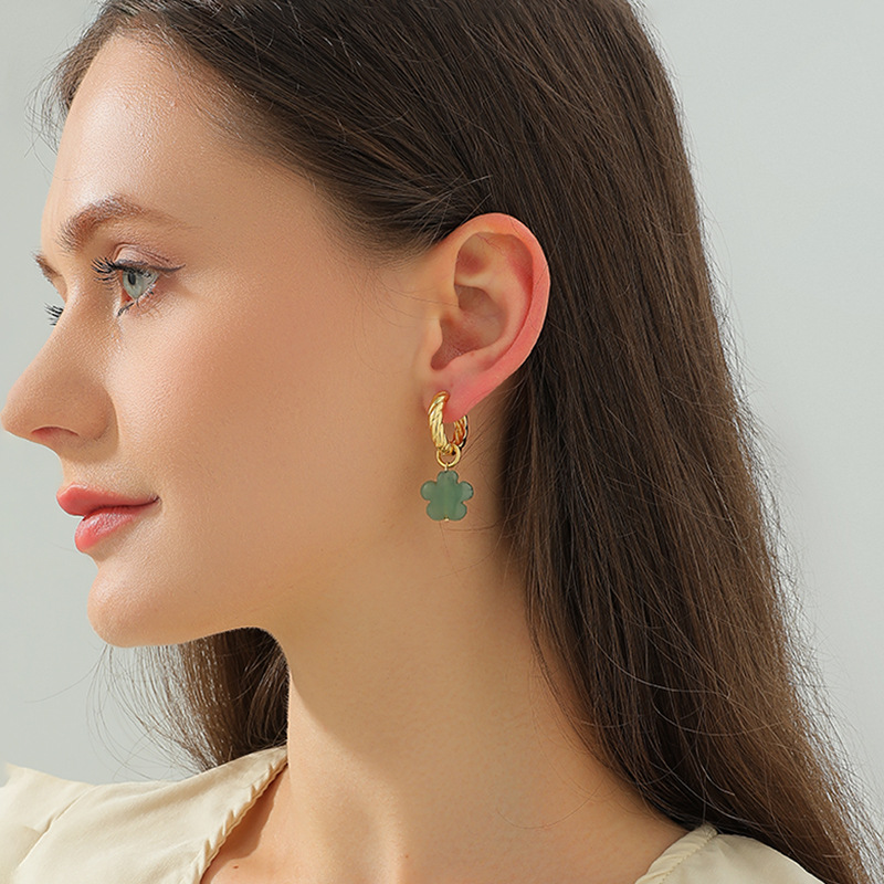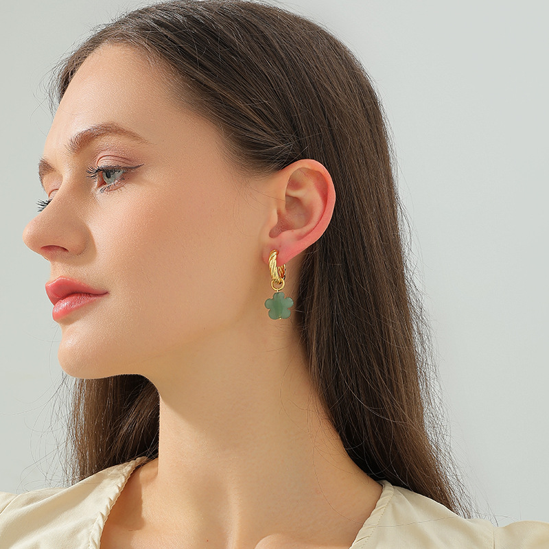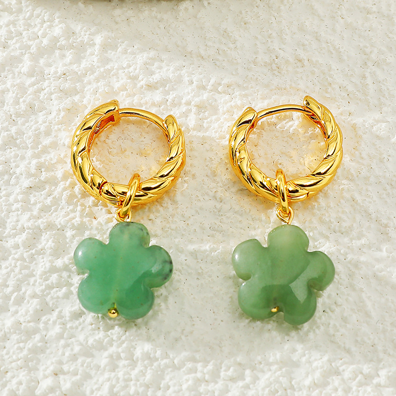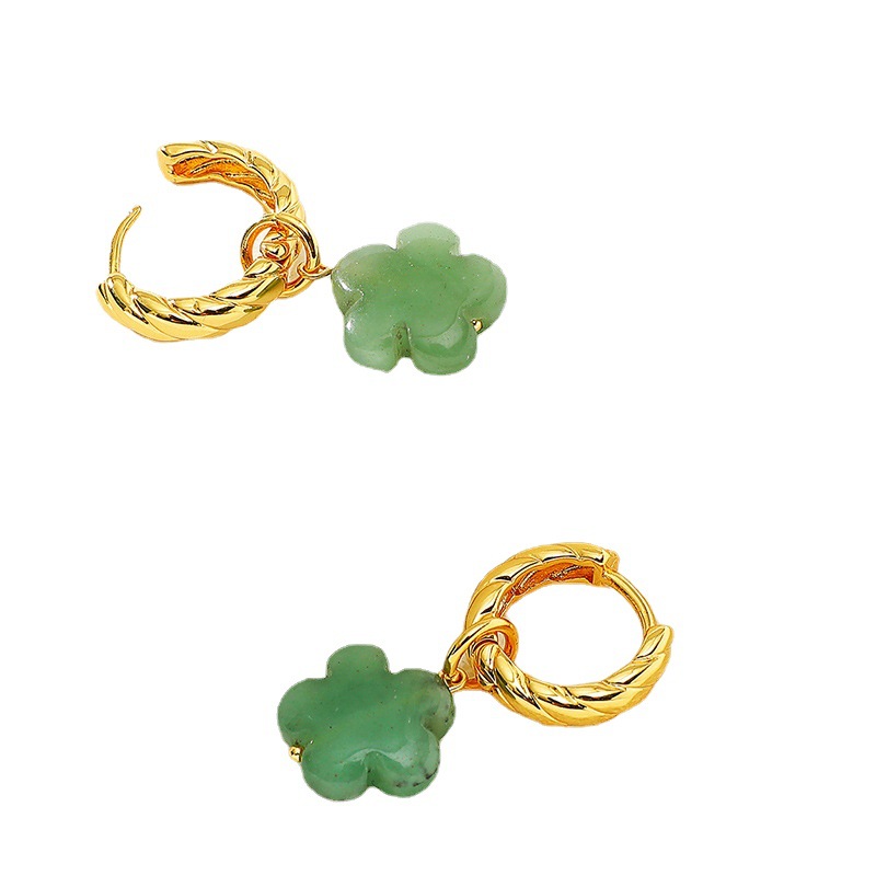 Natural Green Dongling Stone Brass Thread Ear Clip