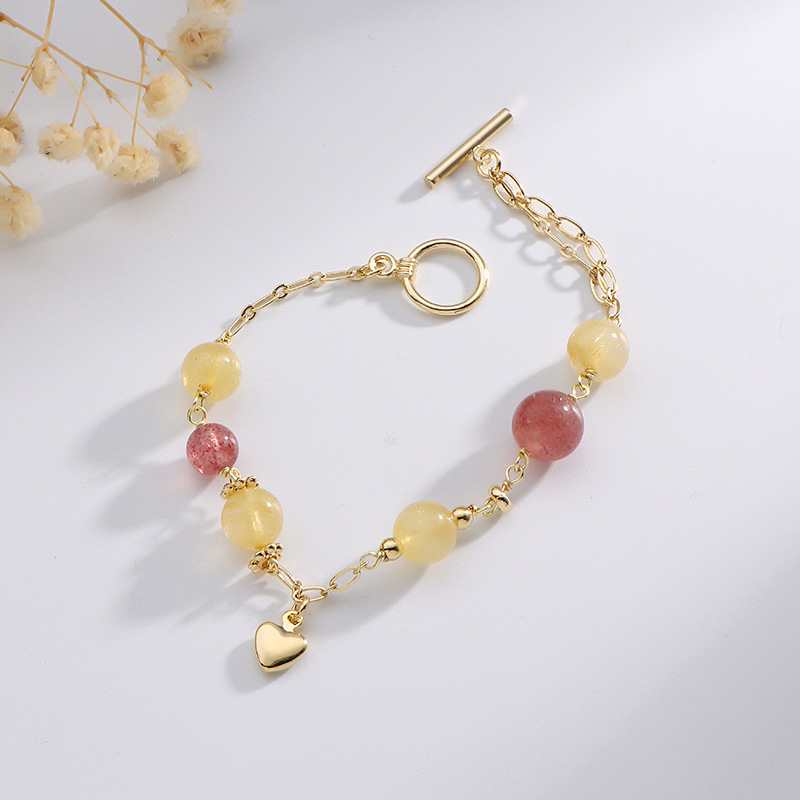 Style: Korean style/Korean styleMaterial: CrystalType: BraceletStyle: Women'sCrystal type: Strawberry crystal Rutilated crystalShape: Heart shape