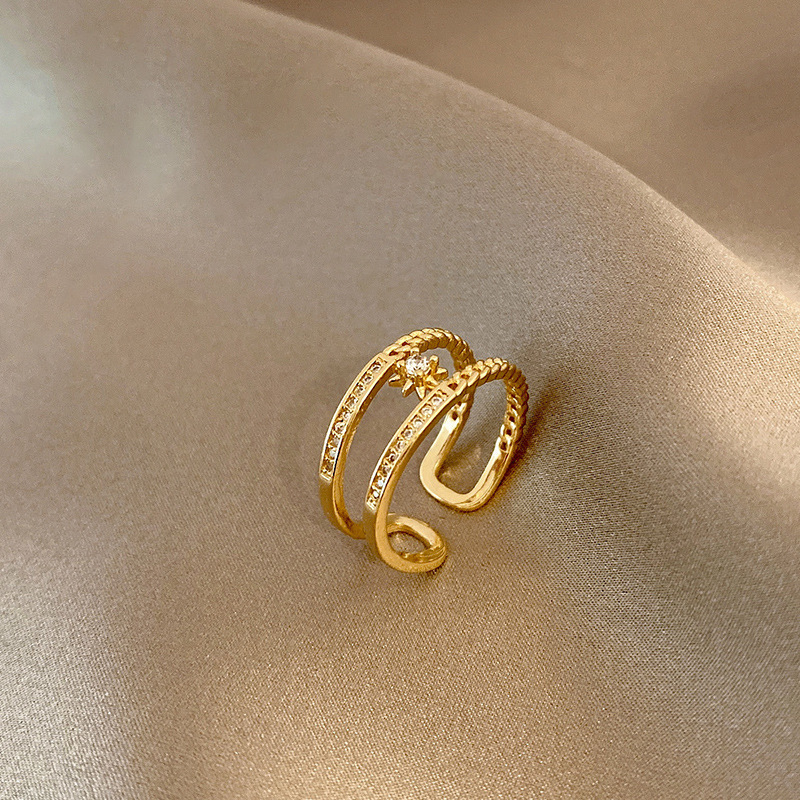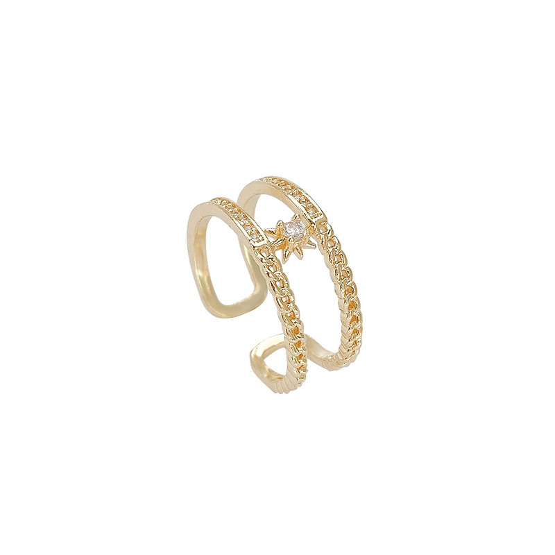 Product information:Type: Ring Treatment Process: Micro inlay Color: Gold Size: free size Style: Women's Material: Alloy Shape: Geometry Style: fashion OL Inner ring diameter: 1.6cm adjustable opening