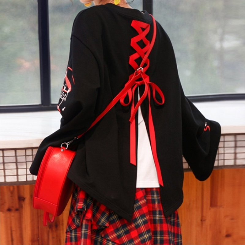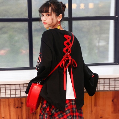 Women's fake two-piece flared sleeves long sleeve t-shirt