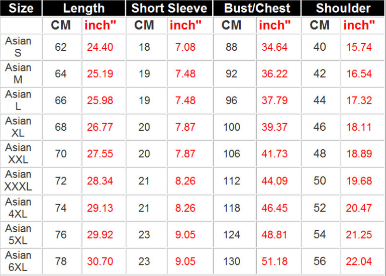 Size: S, M, L, XL, XXL, XXXL, XXXXL, 5XL, 6XL