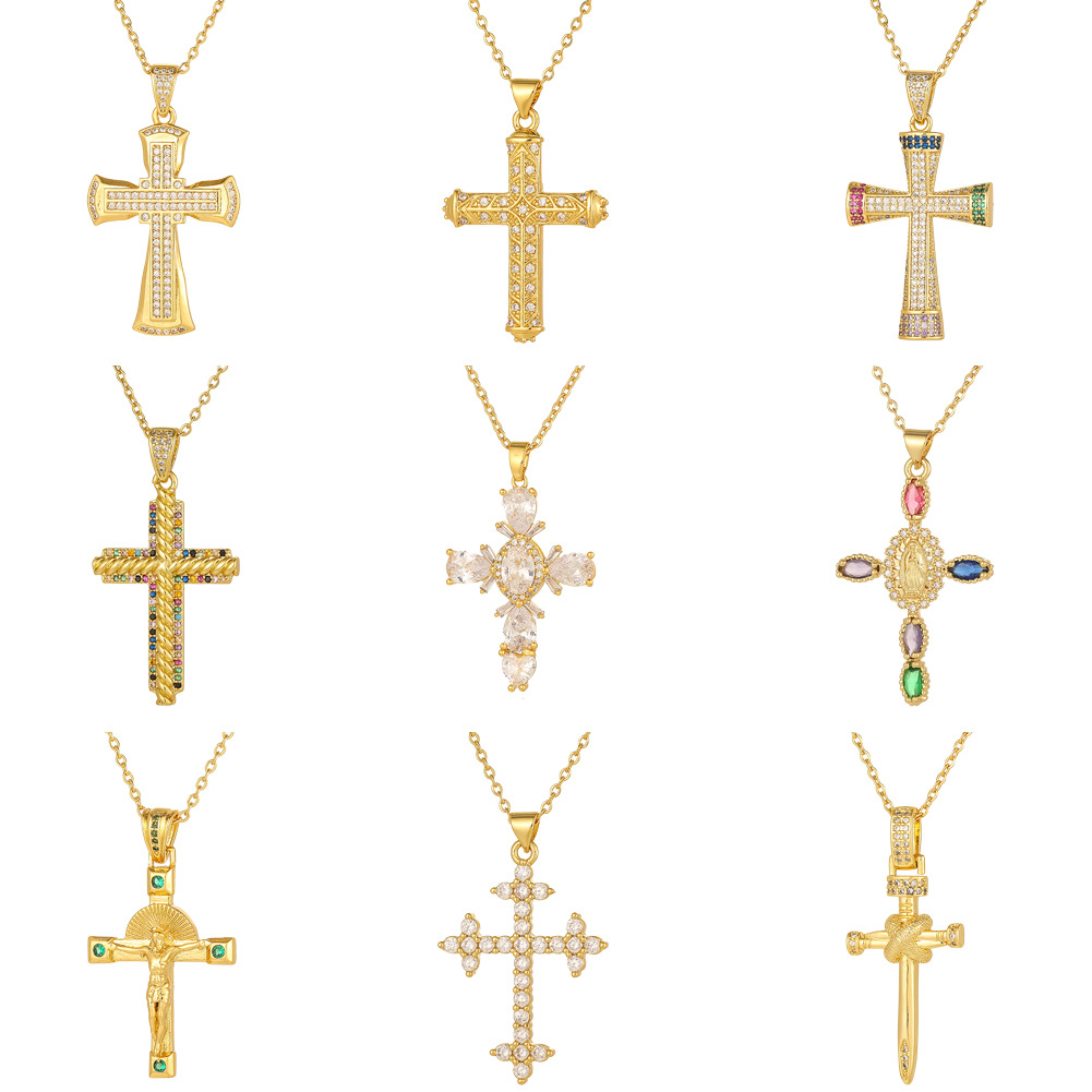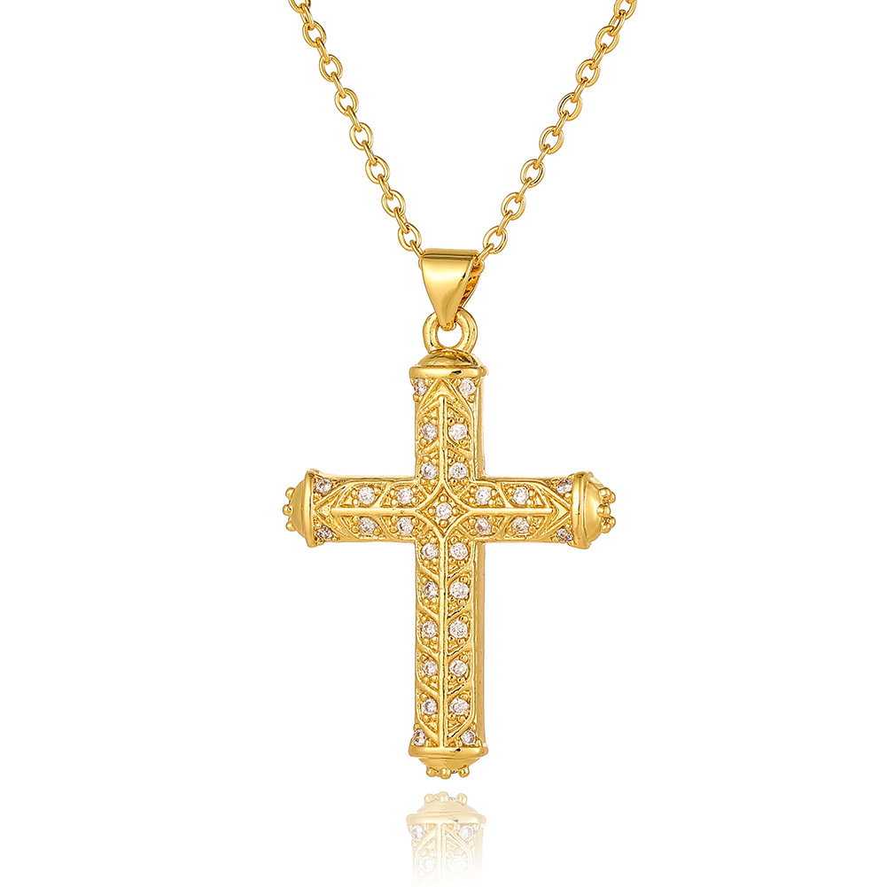 Product information:Treatment Process: Electroplating Pendant material: Copper/zircon Chain style: O-ring chain Material: Copper Shape: Cross Popular elements: Ring Style: affordable luxury style