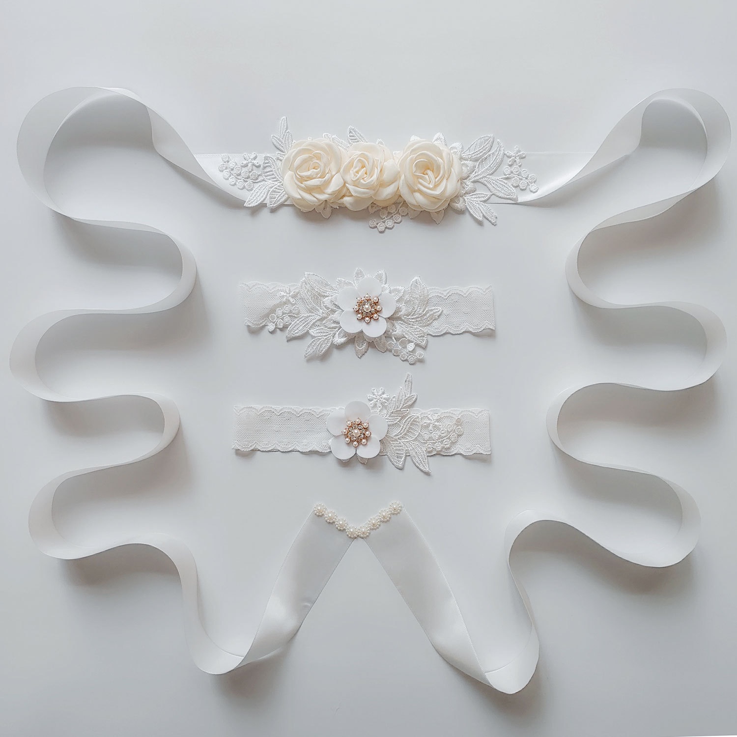 Product information:Material: LaceFunction: Wedding decorationThickness: thickerFabric: PolyesterStyle details: embroideryRevision: Can be revisedColor: White/A pair of gartersSize: Leg circumference: 40-55CM