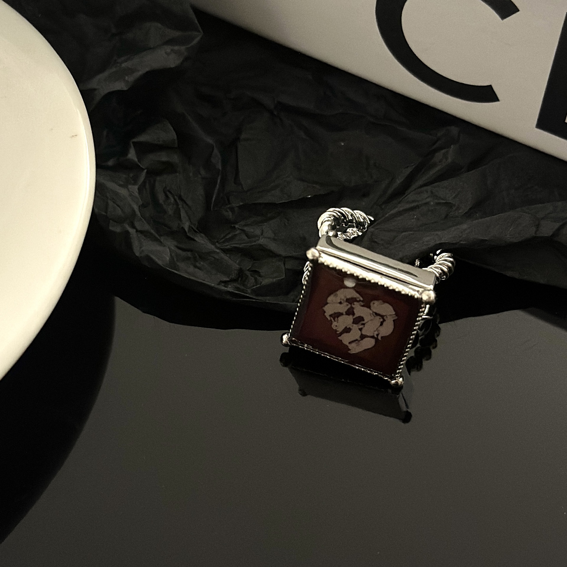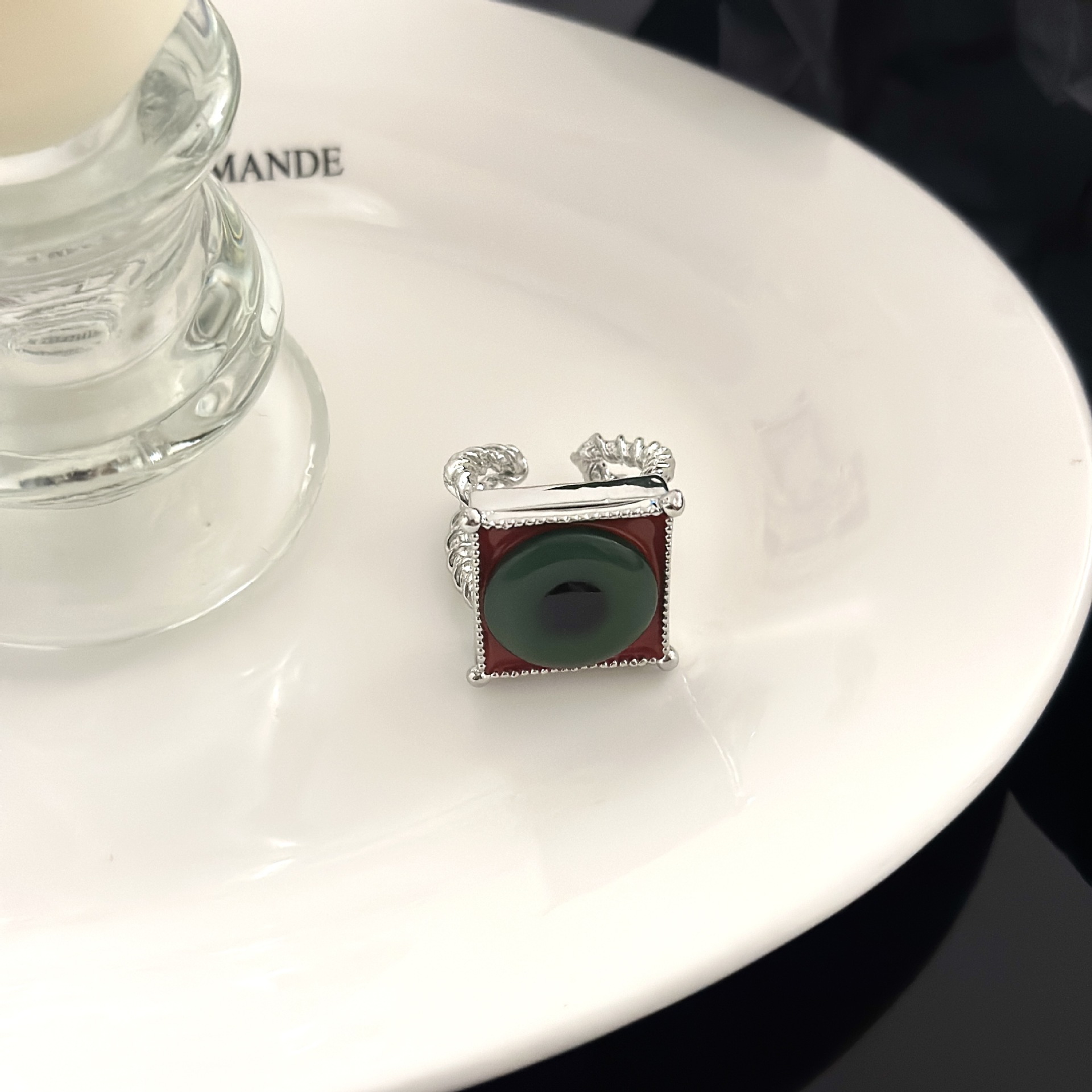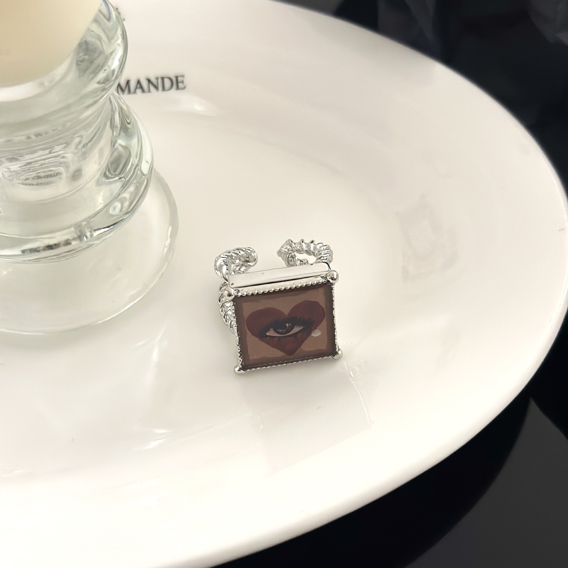 Color: A rabbit oil painting ring, B red heart peace buckle ring, C Black Heart peace buckle ring, D Rose oil painting ring, E eye oil painting ring, F necklace