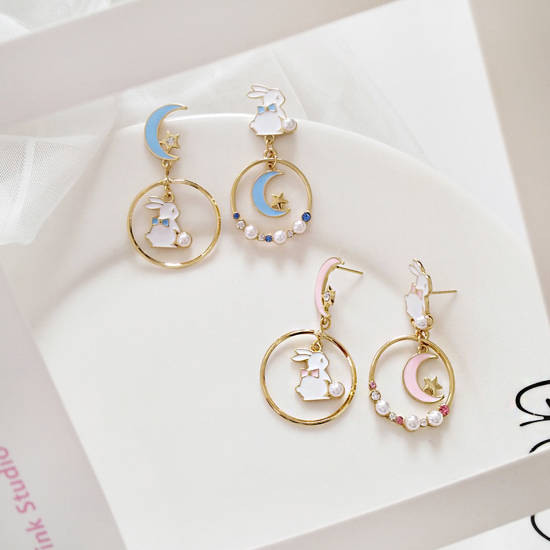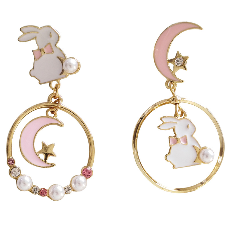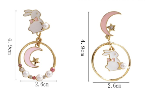 Sweet Temperament Girl Rabbit Metal Moon Earrings