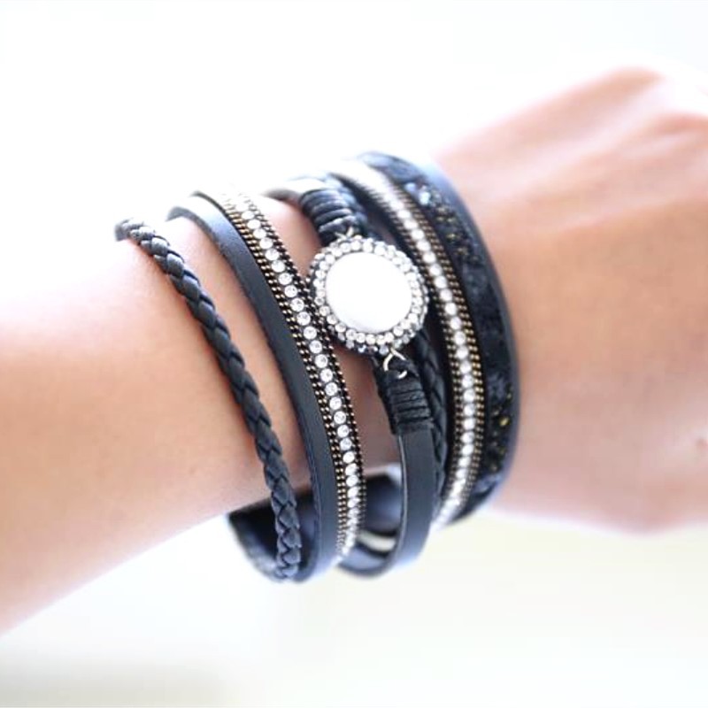 Explosive Ladies Bracelet Diamond-Studded Leather Bracelet Fashion Trend Magnet Clasp Bracelet Jewelry