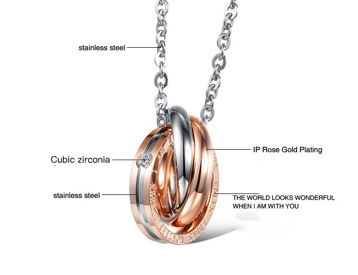 Product Information: Material: titanium steelProcessing technology: diamond-encrustedModeling: GeometryColor: black, rose gold, black pendant, rose gold pendant, a pair Packing:Necklace *1