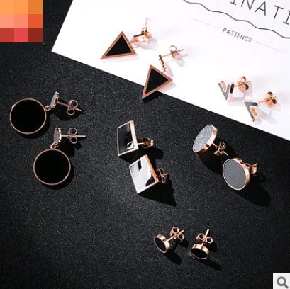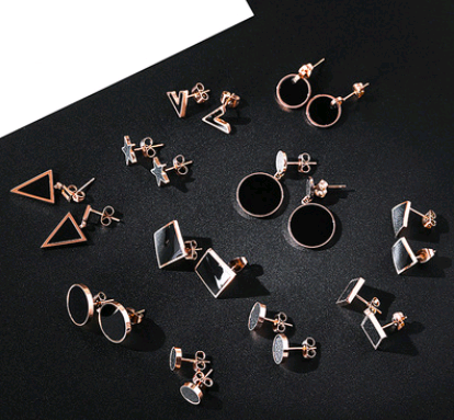 Simple And Versatile Titanium Steel Earrings Temperament Triangle Round Geometric Ear Jewelry Female Titanium Steel Series Earrings