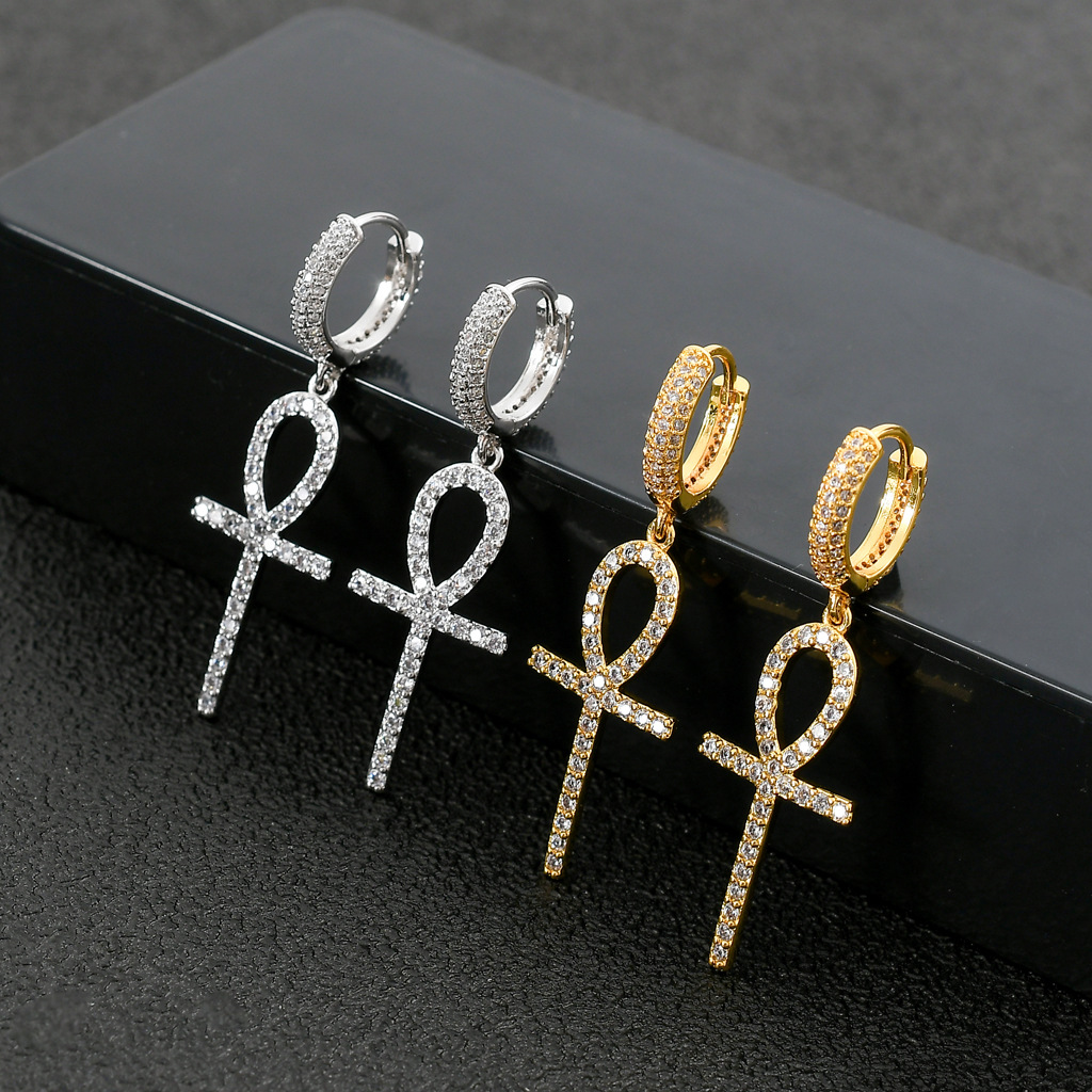 Product InformationType:Ear studsModeling:Ankh Crossproduct material:Copper micro-inlaid zircon + real gold platingproduct weight: 4.1gcolor:gold silver