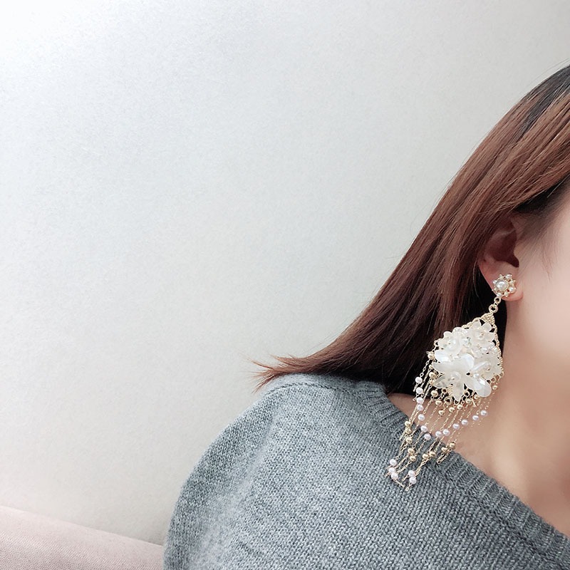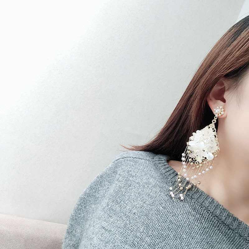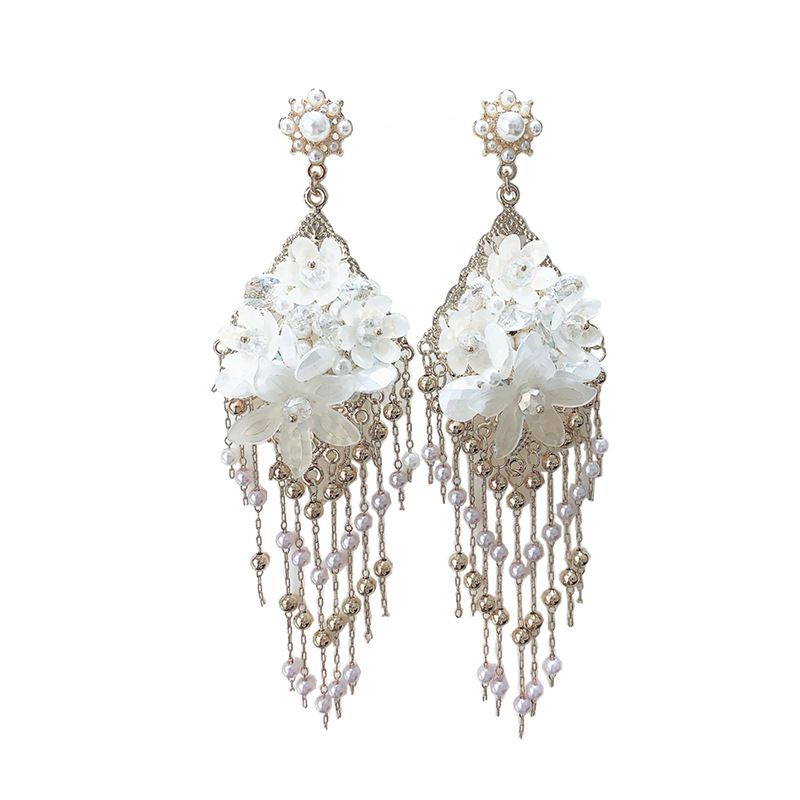 Needle Korean Dongdaemun Fashion New Metal Pearl Flower Tassel