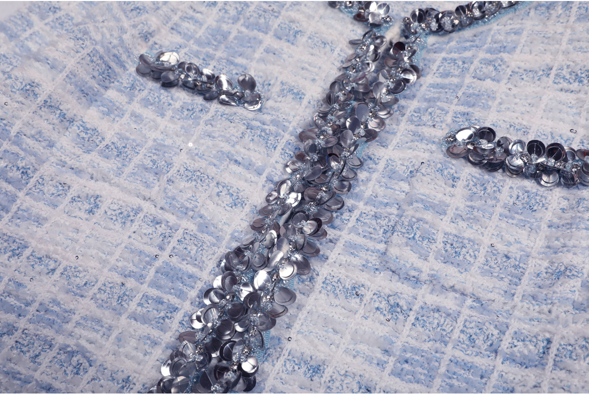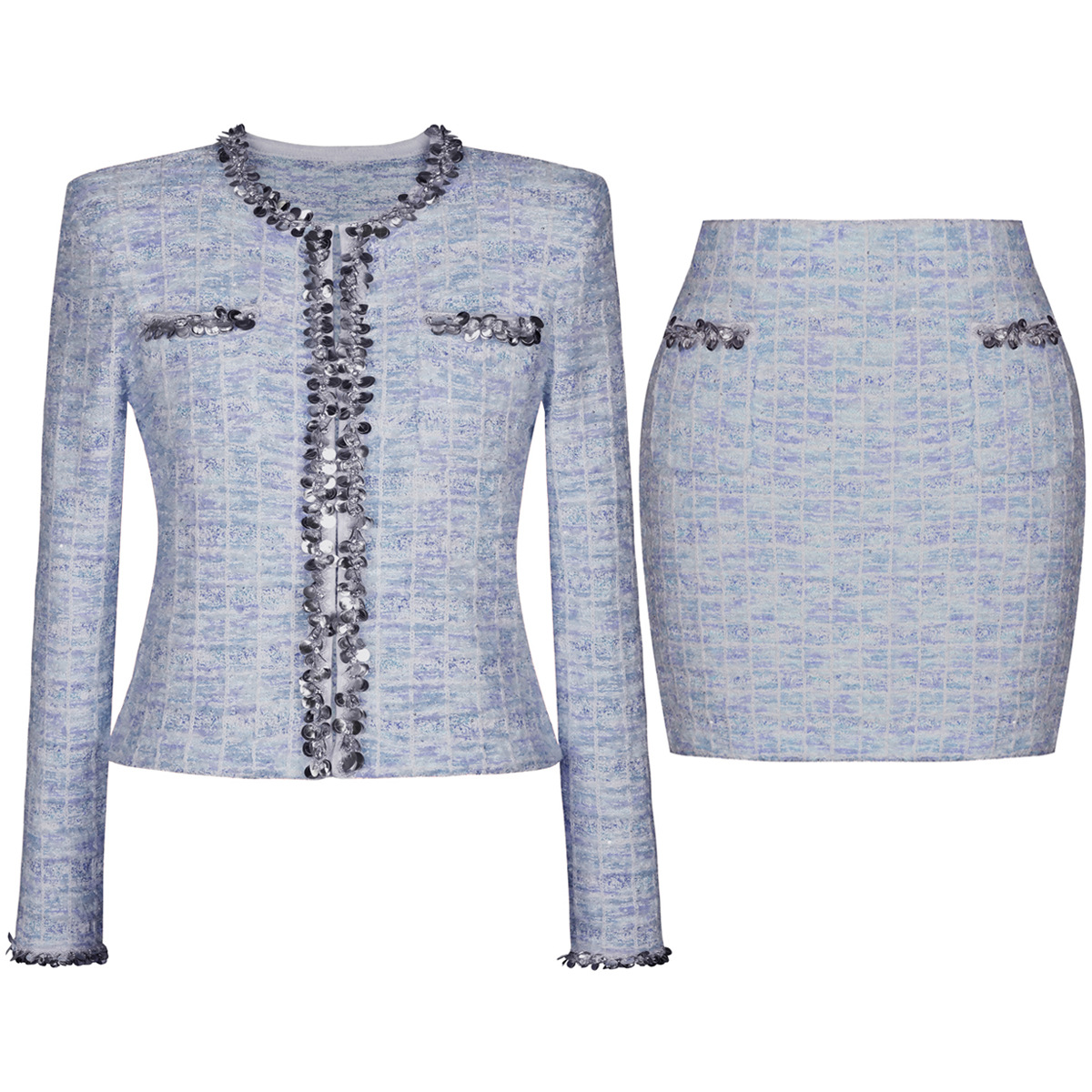 Color: pink suit, light blue suit, pink top, light blue top, pink overskirt, light blue skirt