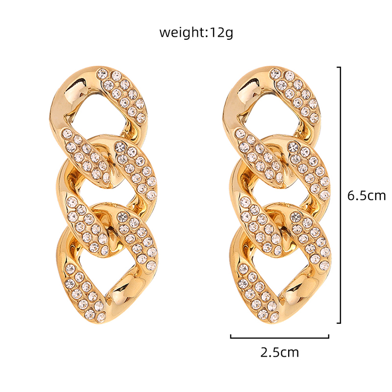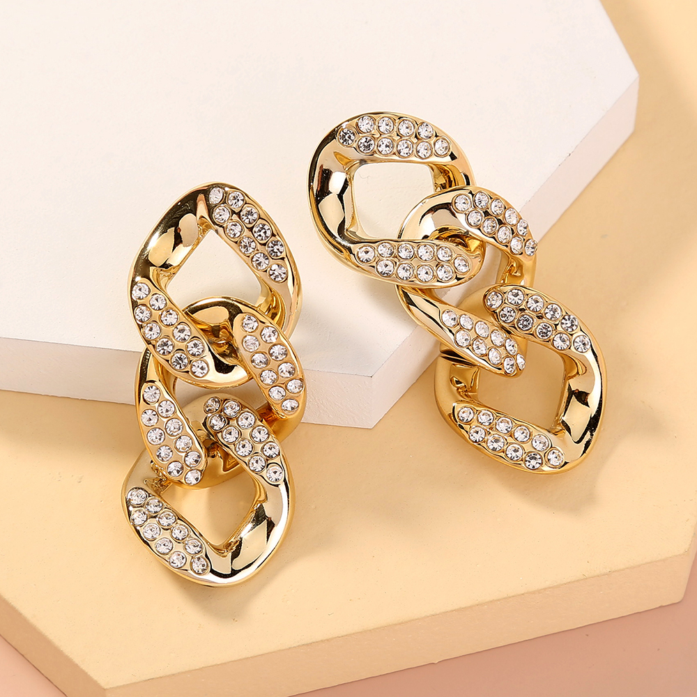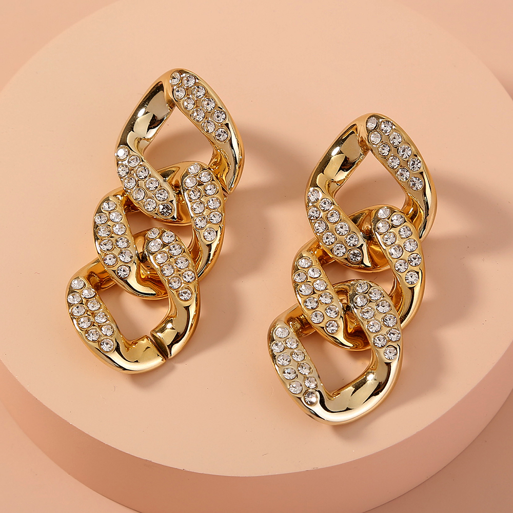 Exaggerated studs with short chains and diamond studs