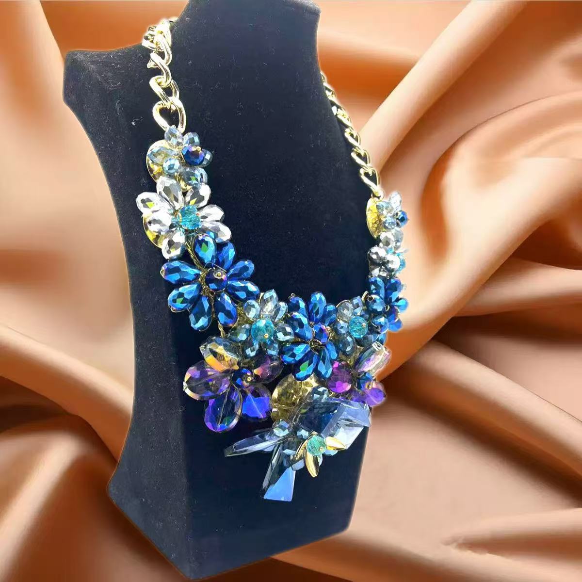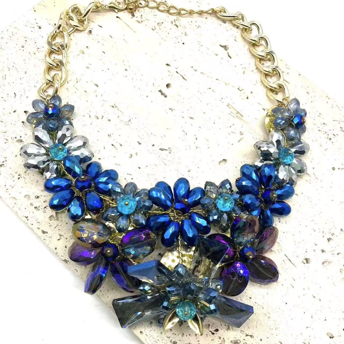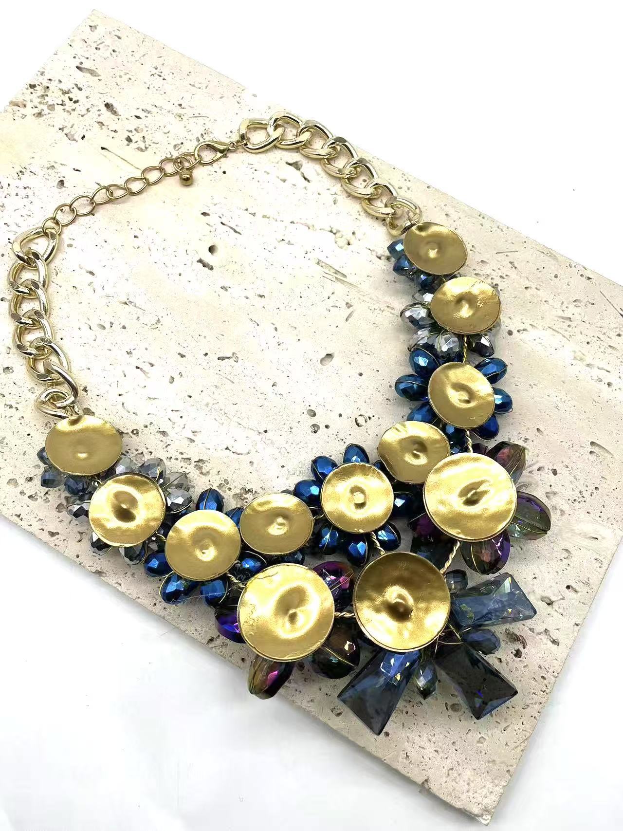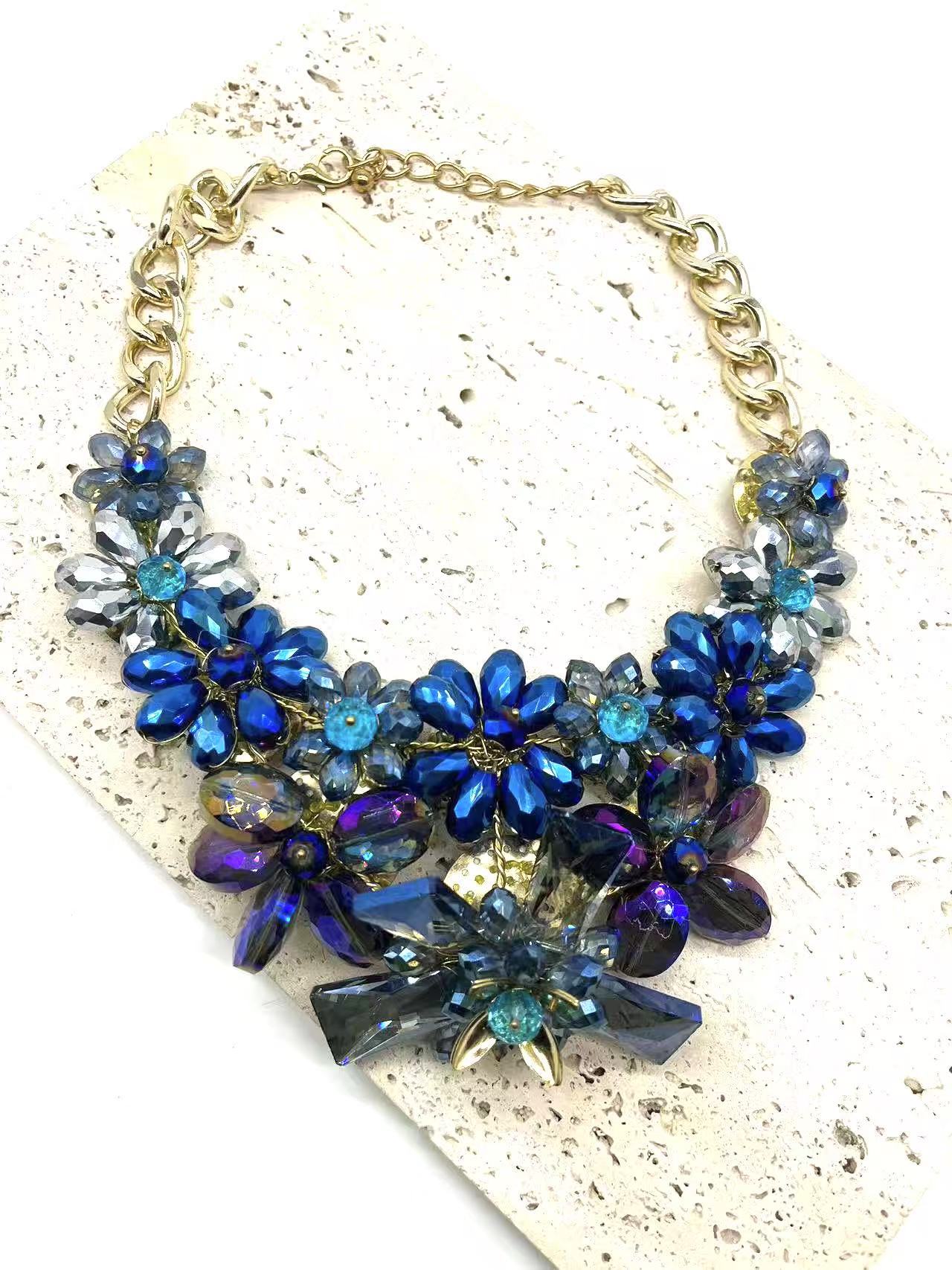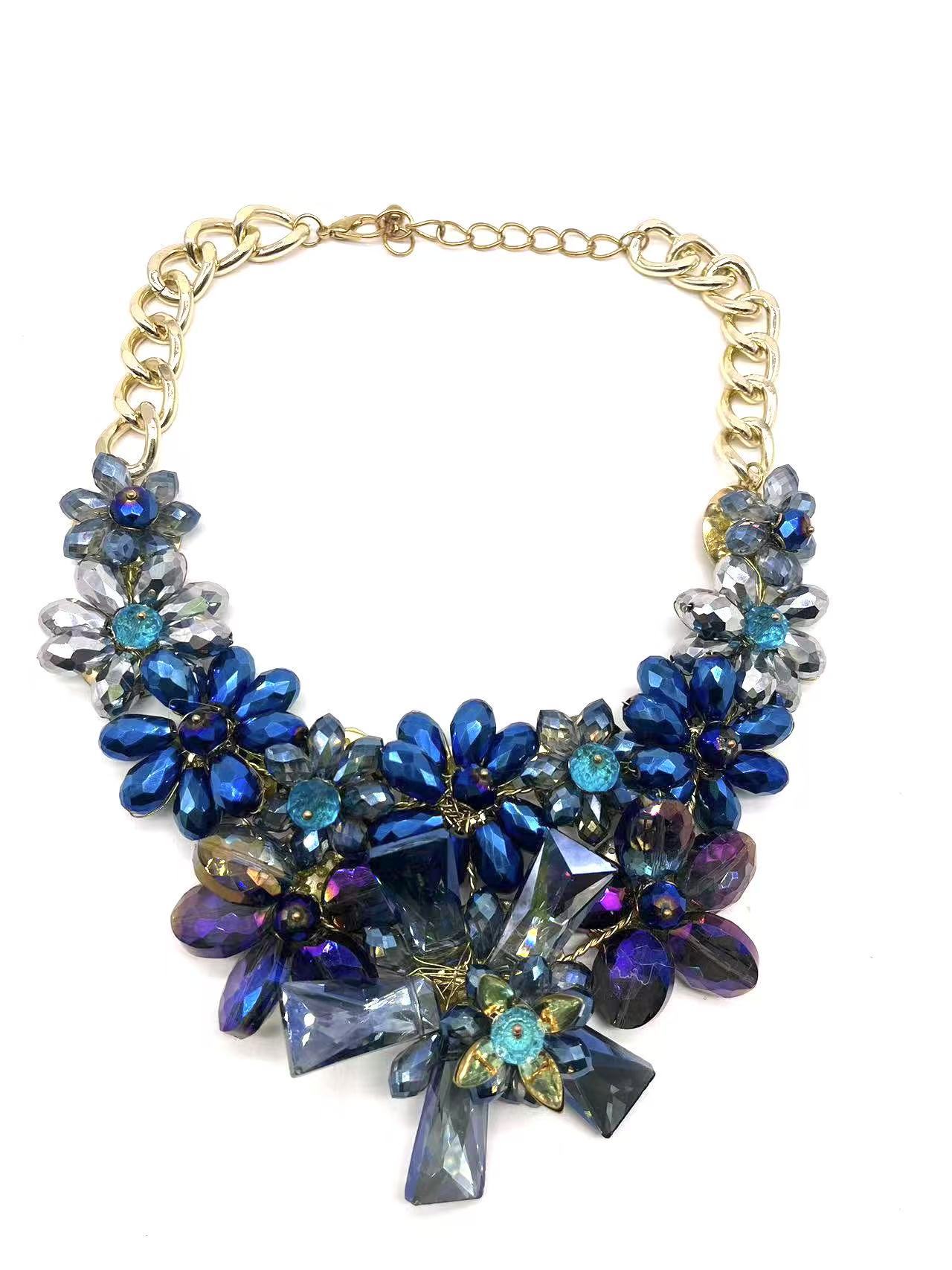 Product information:Treatment Process: Electroplating Color: blue Applicable population: Female Pendant material: Crystal Material: Glass/colored glaze Shape: Flower, geometry Chain material: Aluminum