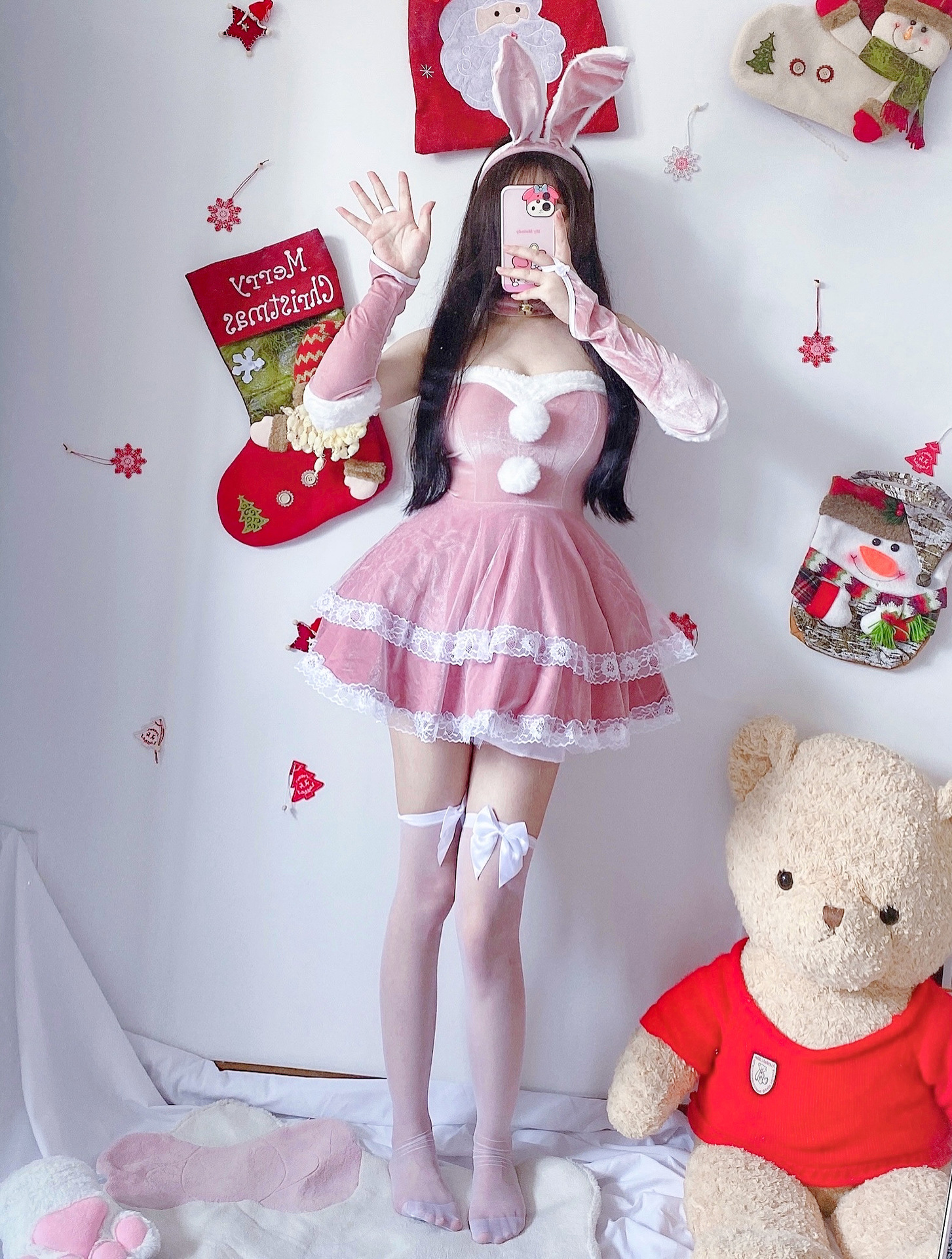 Color: Pink Christmas (dress+headwear+neckwear+gloves)