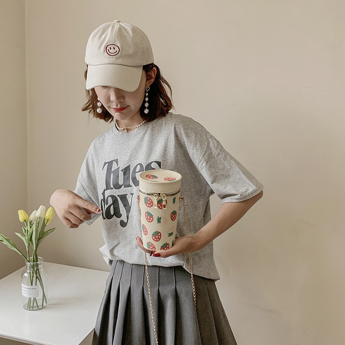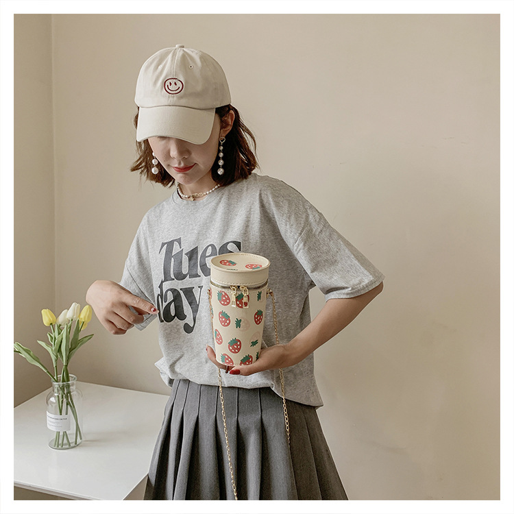 Style: street trendMaterial: PUBag trend style: small round bagLuggage Size: MediumWith or without interlayer: YesStrap root number: singleSize: Width: 11cm/ height: 18cm/ thickness: 8cm