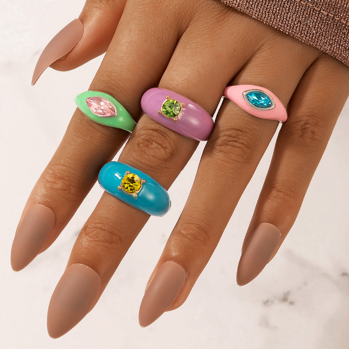 Type: RingMaterial: AlloyStyle: ethnic styleColor: : Macaron
