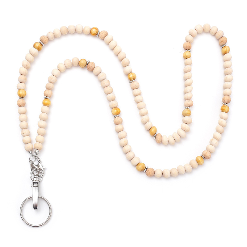 Colored Stone Wooden Bead Mobile Phone Key Necklace