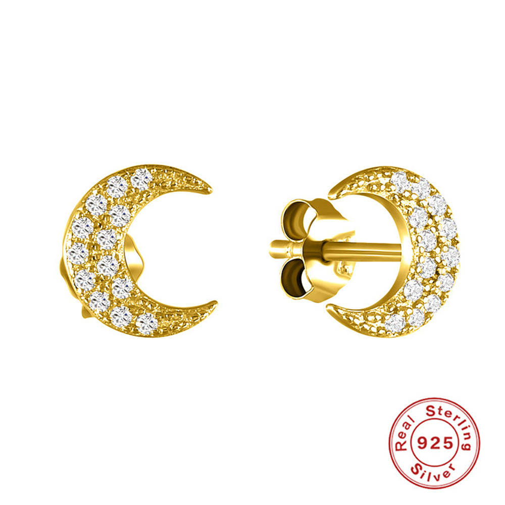 S925 sterling silver small fresh moon earrings earrings Amazon hot selling fashion simple diamond-studded girls ear clips ear buckles
