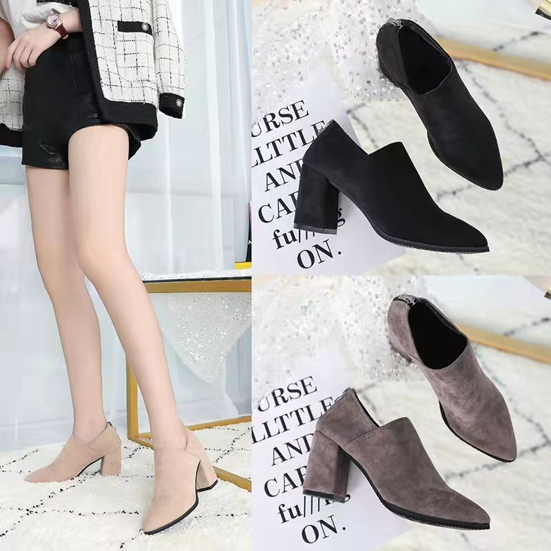 Product information :Style: KoreanToe shape: pointedUpper material: suedeApplicable gender: femaleHeel height: high heel (6-8CM)Color: black, brown, beigeSize Information:Size :35,36,37,38,39