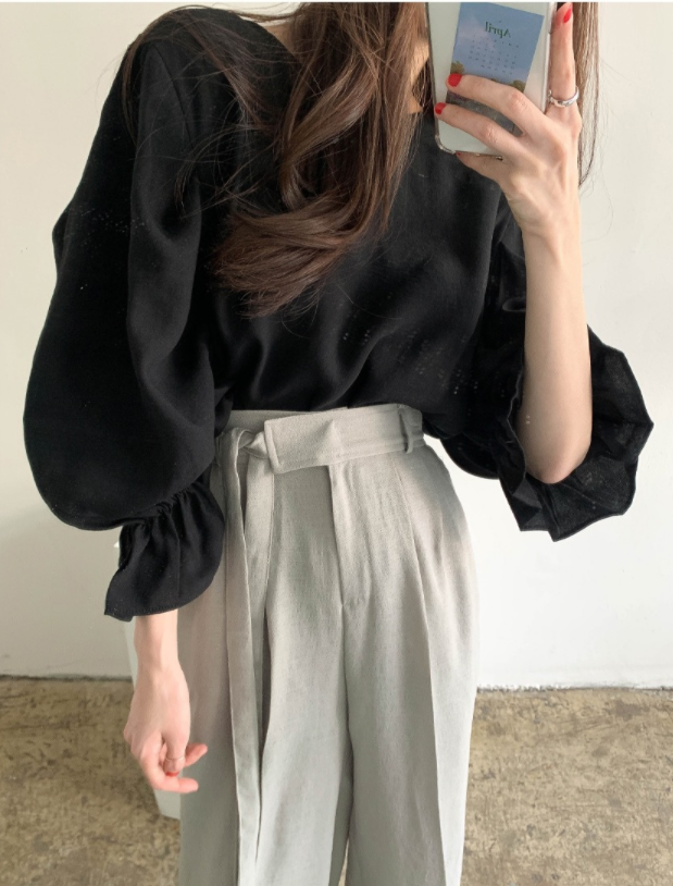 Color: white shirt, black shirt, linen gray pants, blue pants