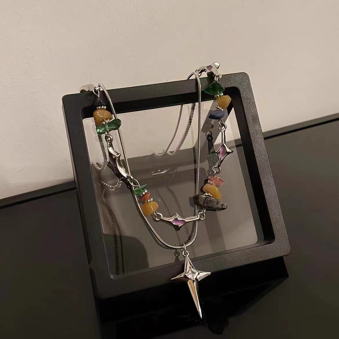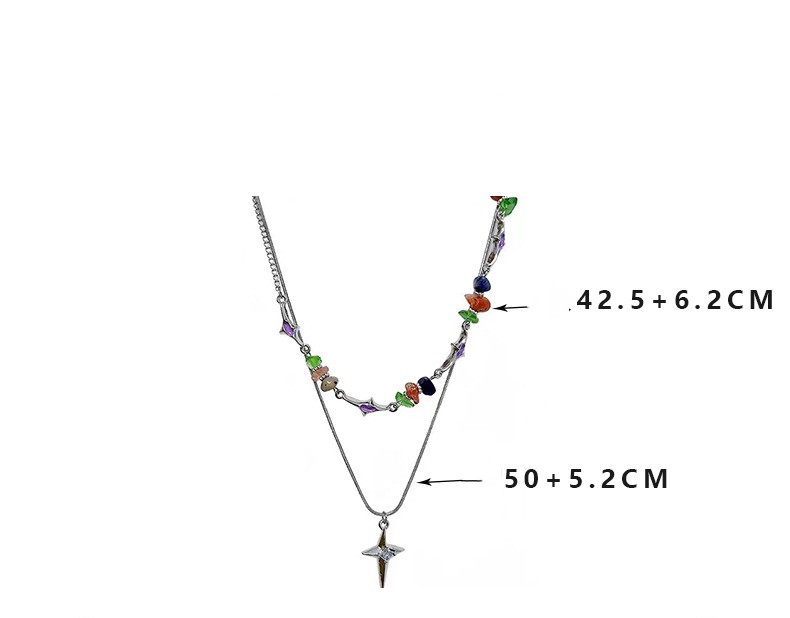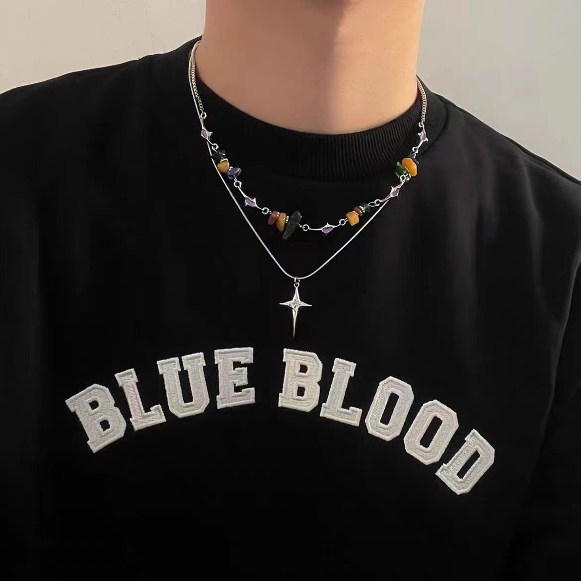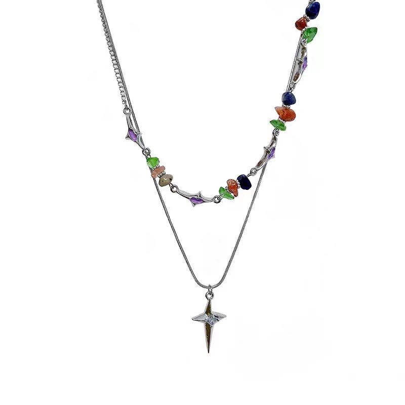 Double Layered Colored Crushed Stone Cross Chain For Boys
