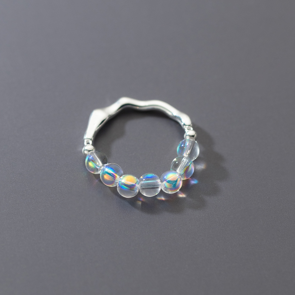S925 Silver Korean Style Simple Crystal Wave Ring