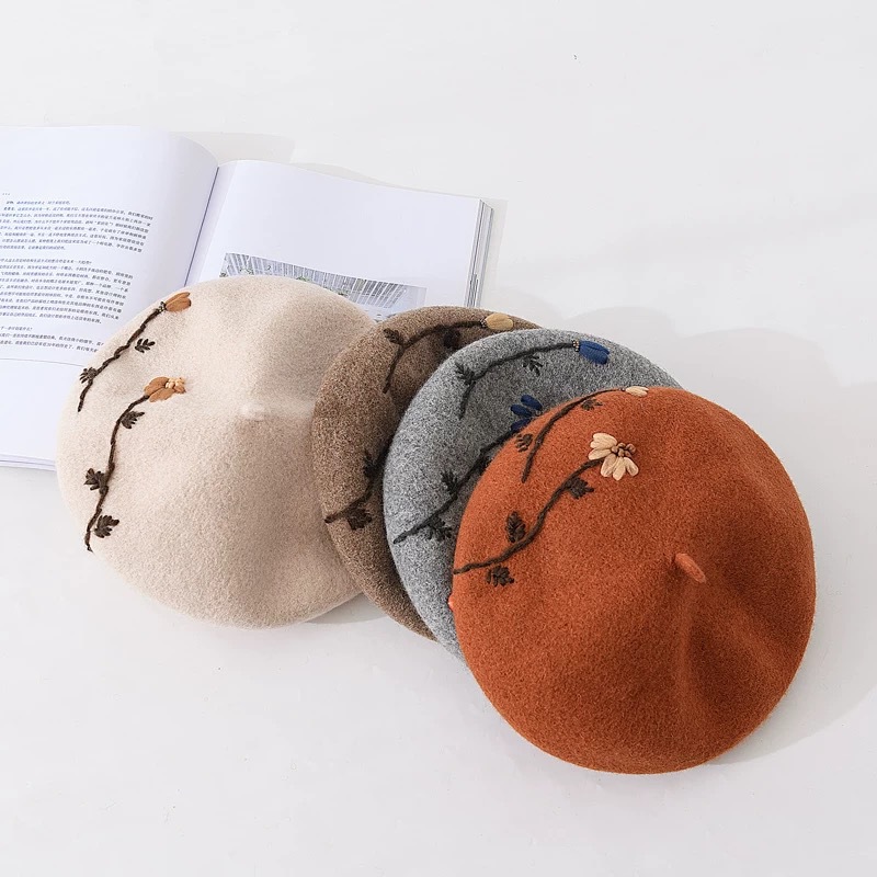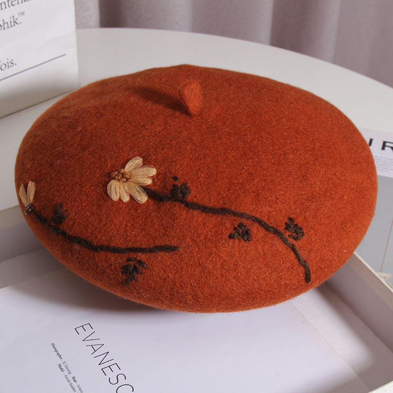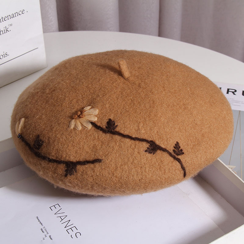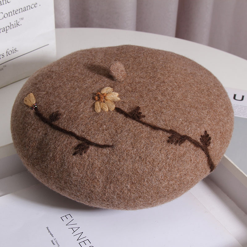 Product information:Processing Technology: hand embroidery Fabric name: Wool blend Color: khaki, black, gray, camel, beige, brick red Size: M(56-58cm) Function: keep warm
