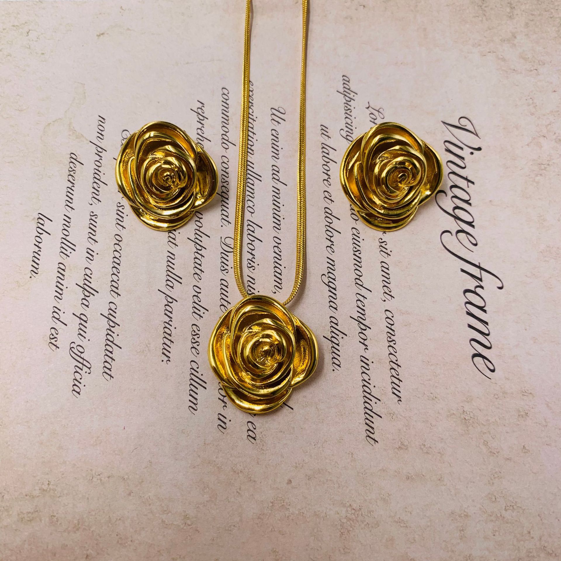 Product information:Treatment Process: Electroplating Color: ear studs, necklace Applicable population: Female Material: Copper Shape: Flower