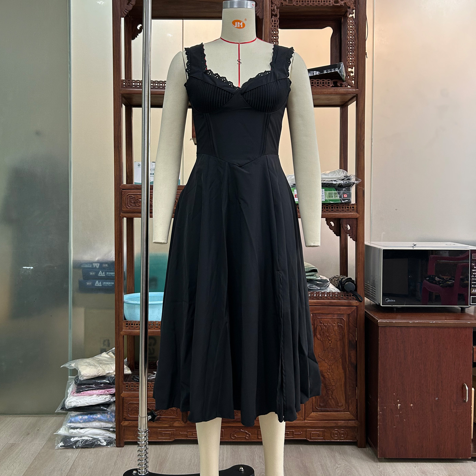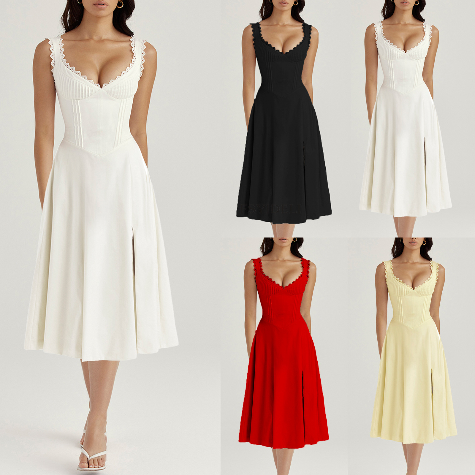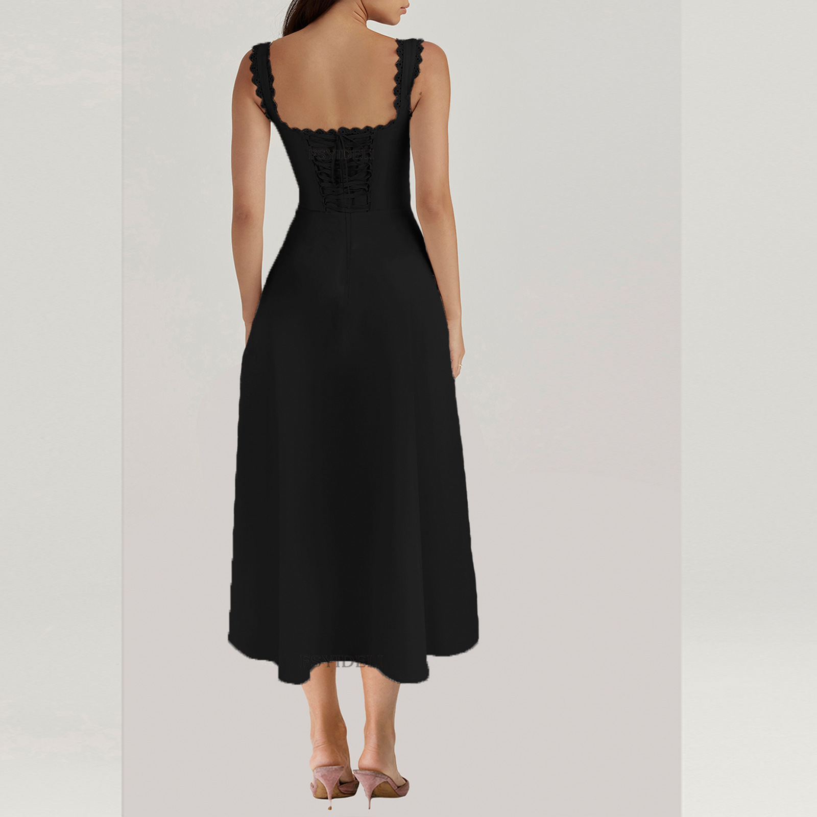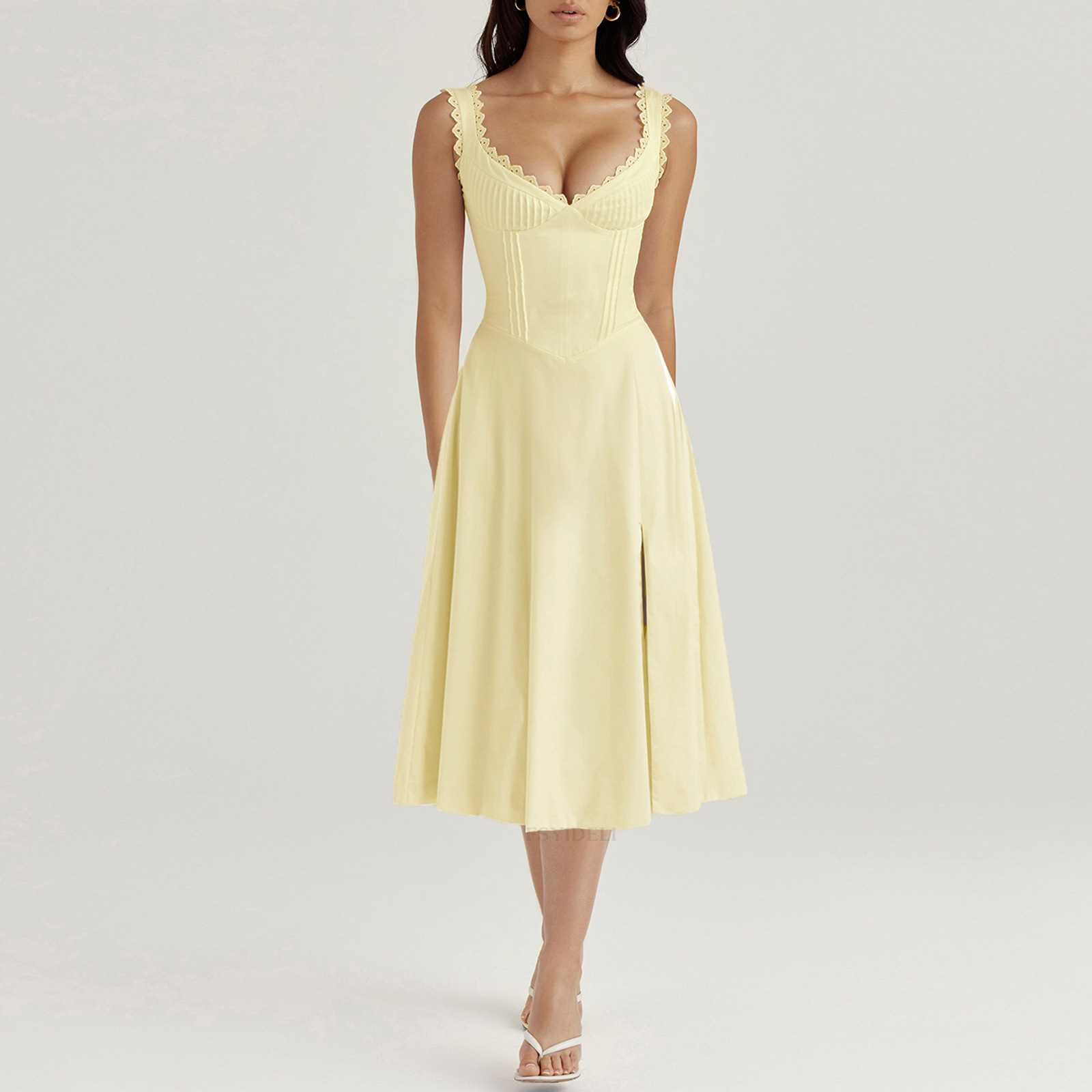 V-neck Waist Trimming Lace Up Temperament Midi Skirt