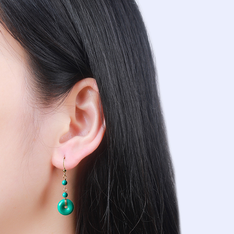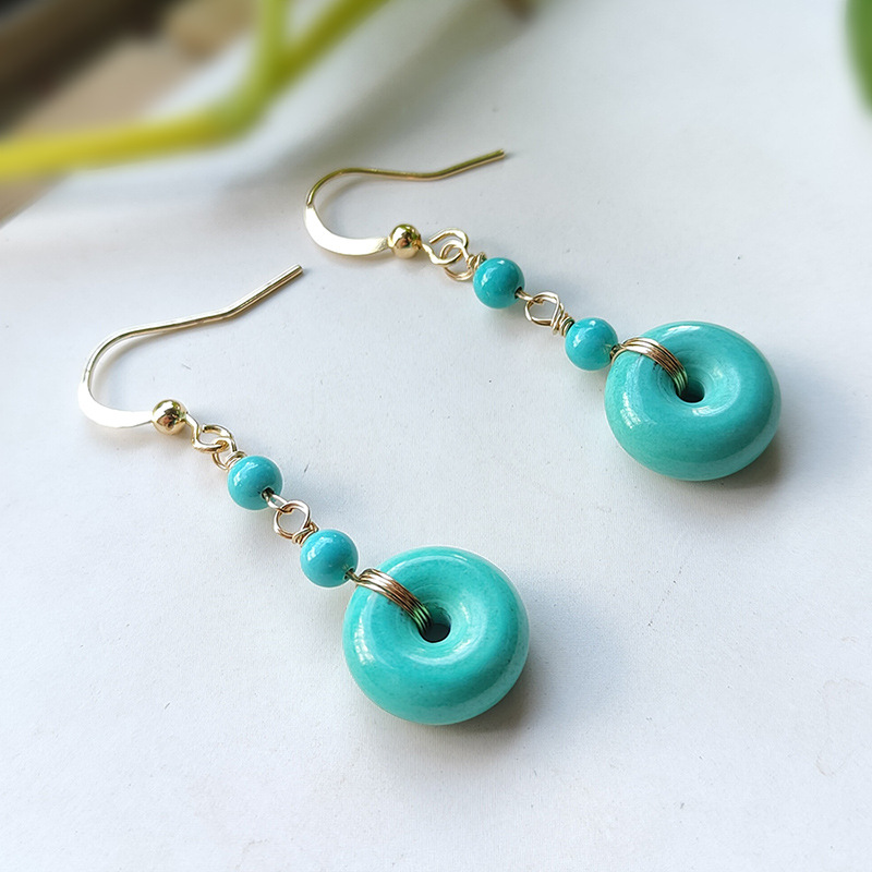 Product information:Treatment Process: ElectroplatingColor: turquoise peace buckle eardropsMaterial: CopperShape: GeometricPopular elements: roundStyle: Original design