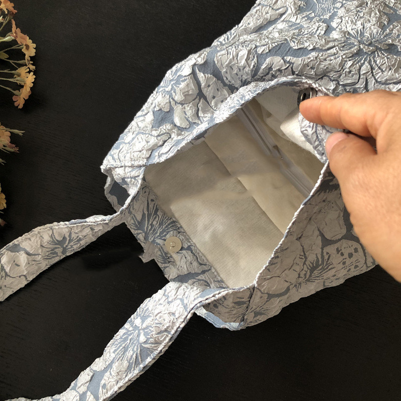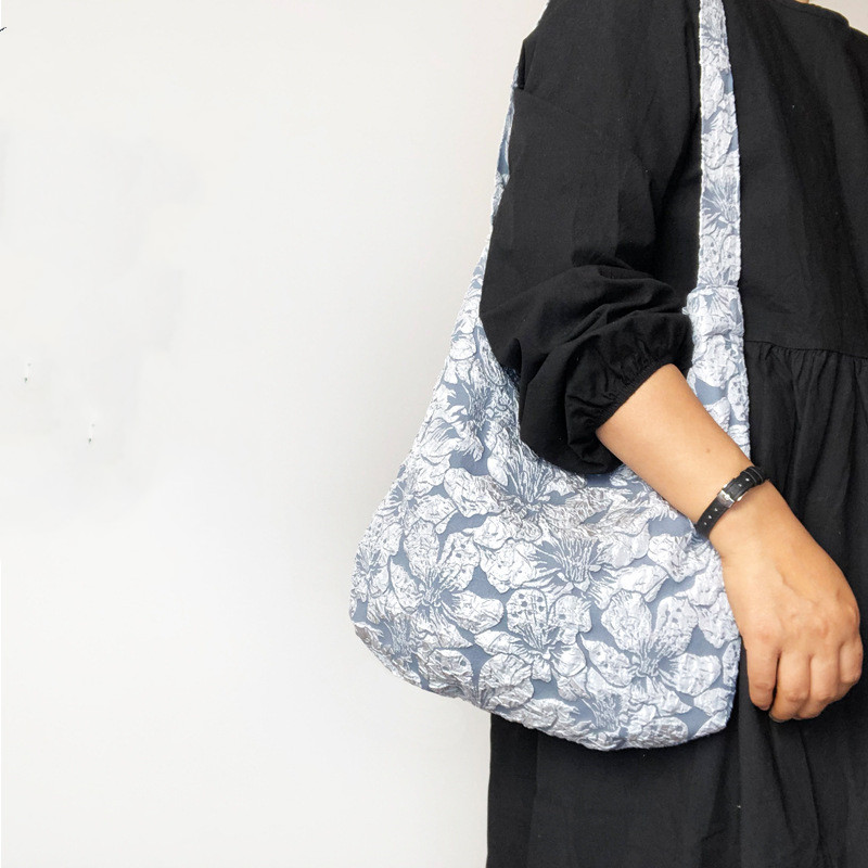 The blue and gray background color and large retro rose jacquard are very suitable for this season
