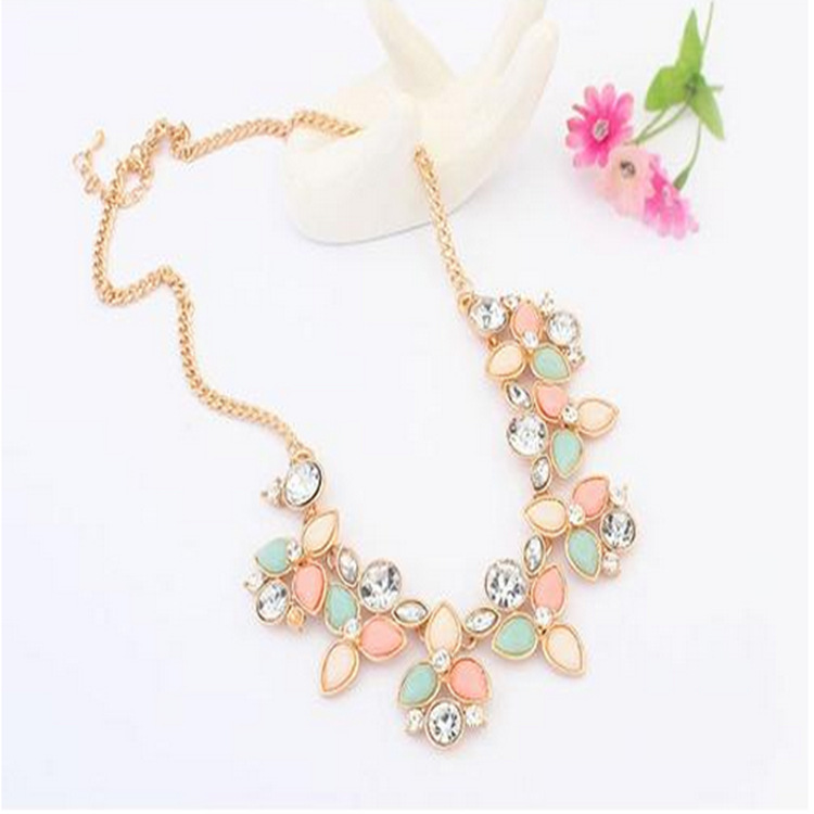 Style: European and AmericanMaterial: Alloy Treatment process: inlaid gemsType: NecklaceStyle: Women'sShape: drop shapePackaging: Individually packed Chain style: twisted piece chainPendant material: alloy
