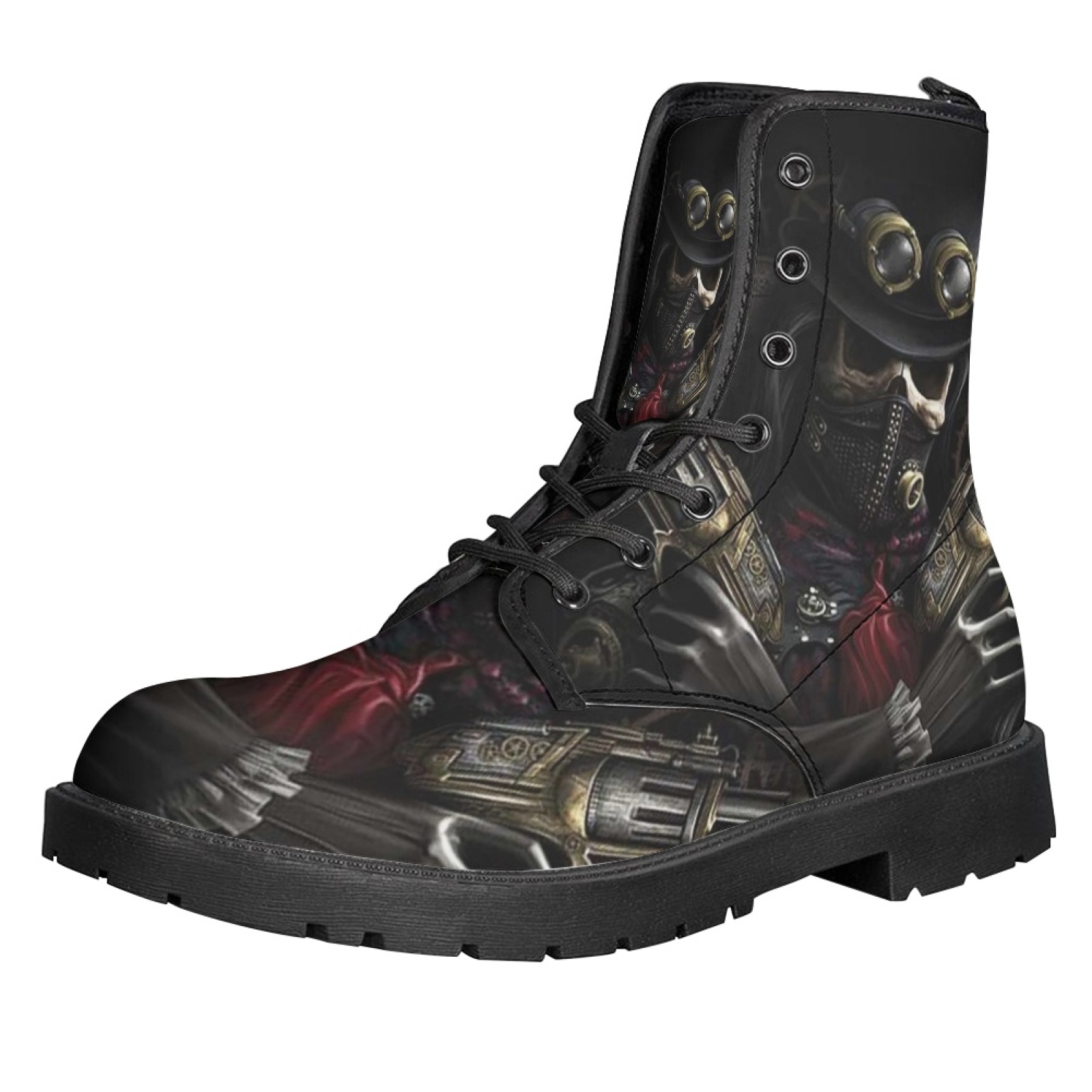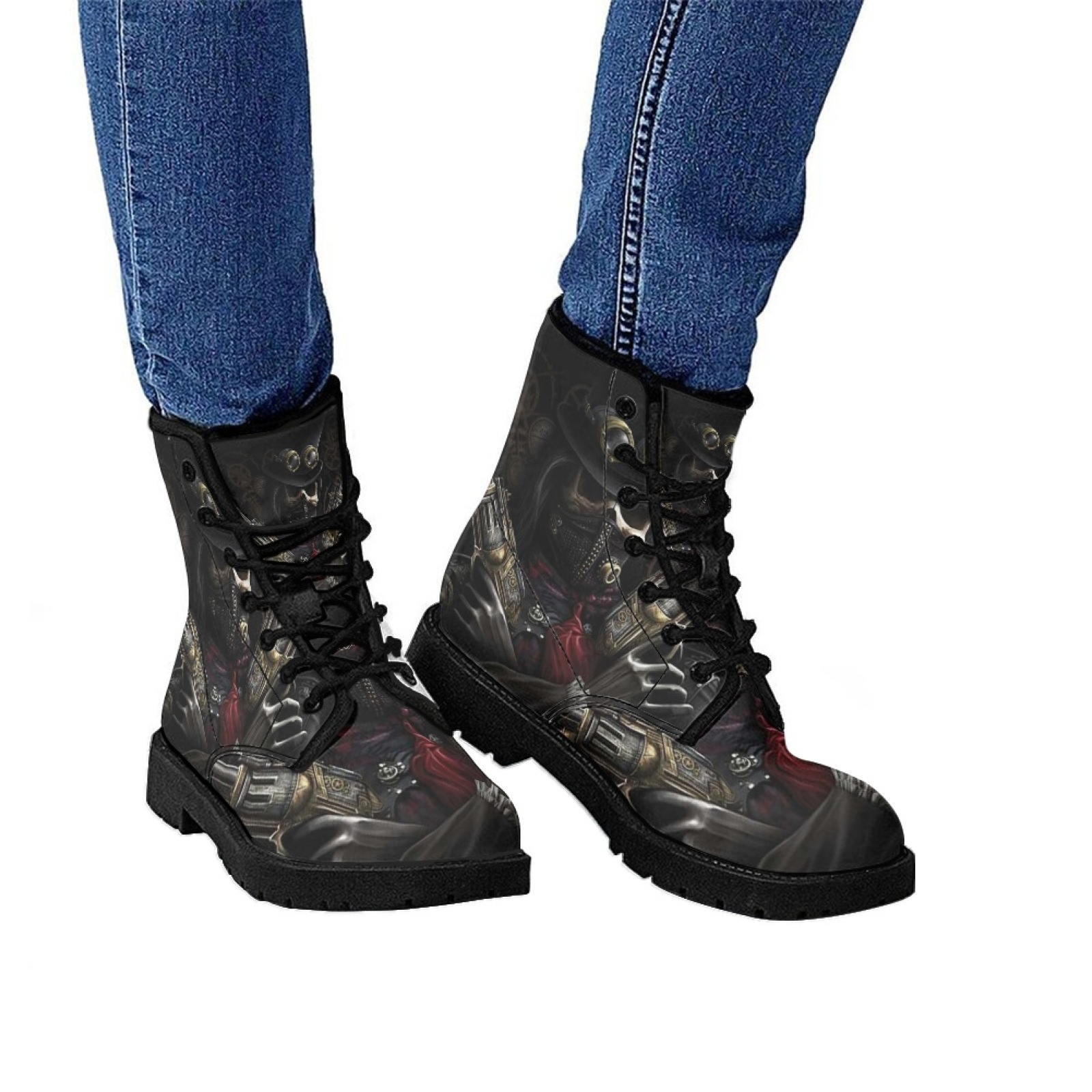 Printed Women's Leather Flat Bottom Low Heel British Martin Boots