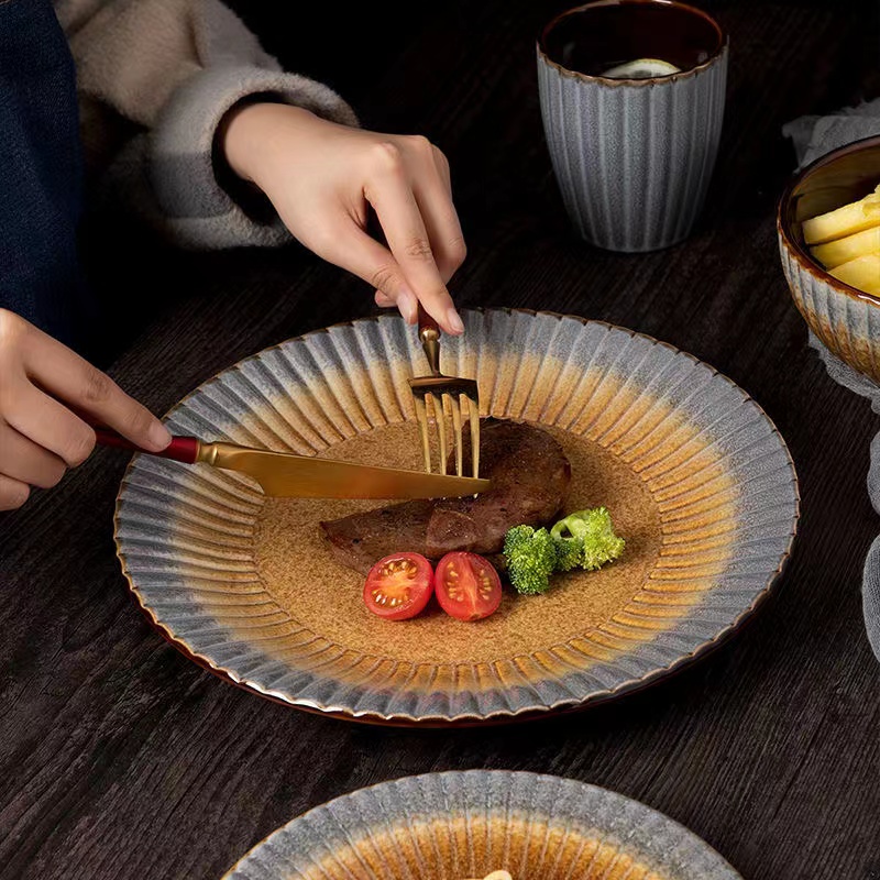 Material: CeramicStyle: fashion and simplicityFeatures:color glazeColour: 8" flat plate, mug, 11" flat plate, 6" bowl