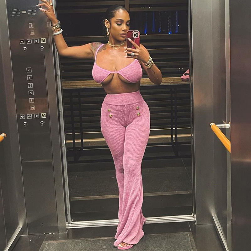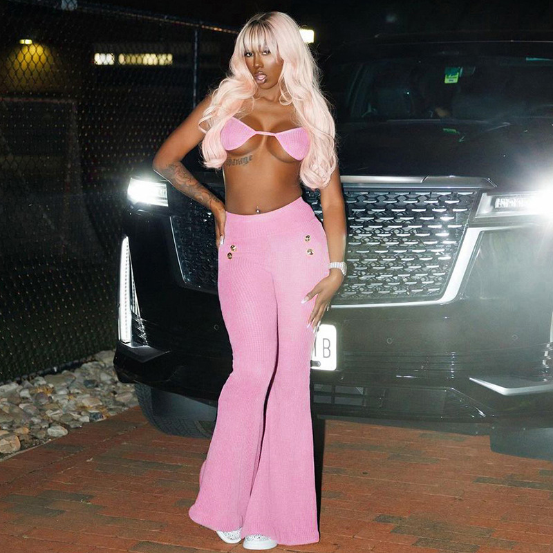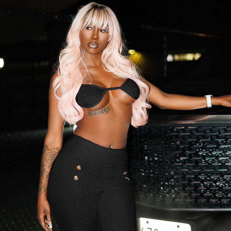 Product information: Color: pink, black Pants length: cropped pants Size: S,M,L Popular elements: exposed navel Main fabric composition: Polyester (polyester fiber) Applicable Gender: Female Sleeve length: sleeveless