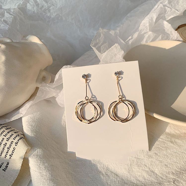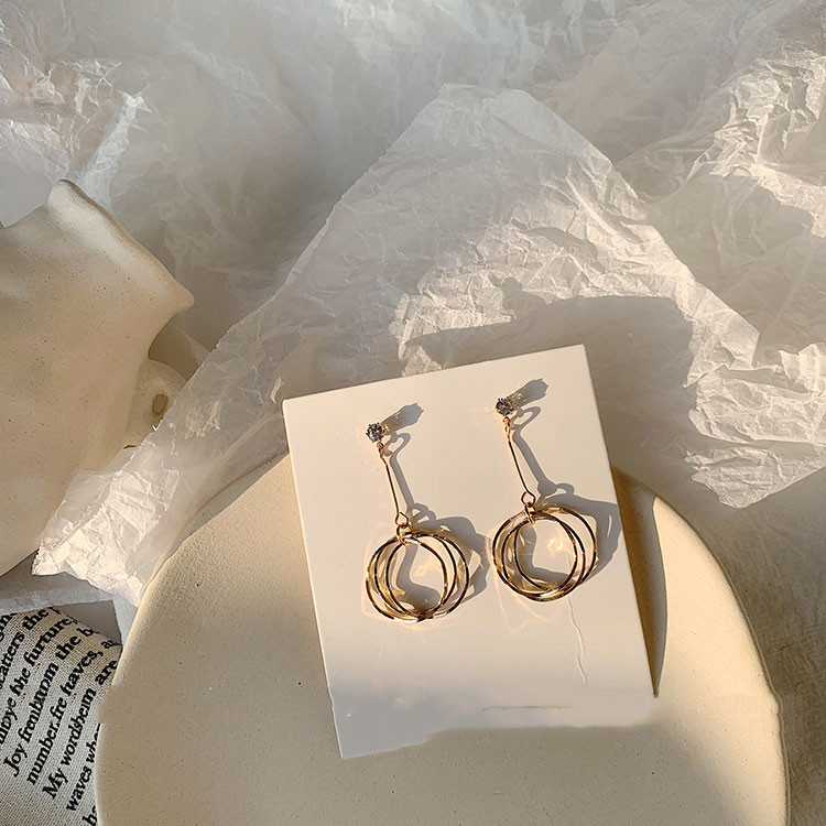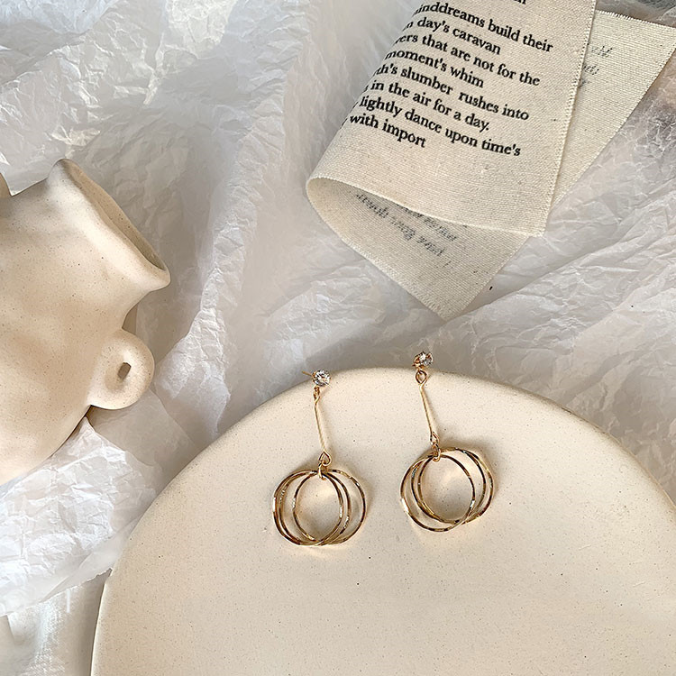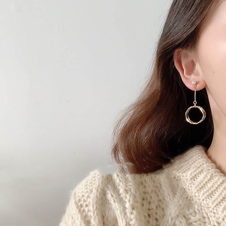 Color Classification: A Golden Irregular Ring Earrings-Steel Pin, B Golden Irregular Ring Earrings-Silver Pin, C Golden Irregular Ring Earrings-Ear Clip