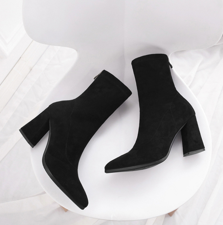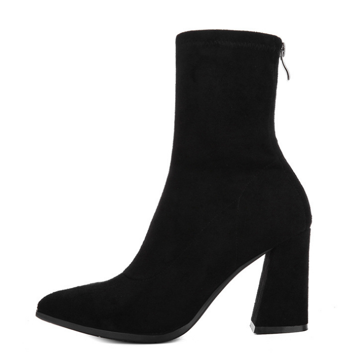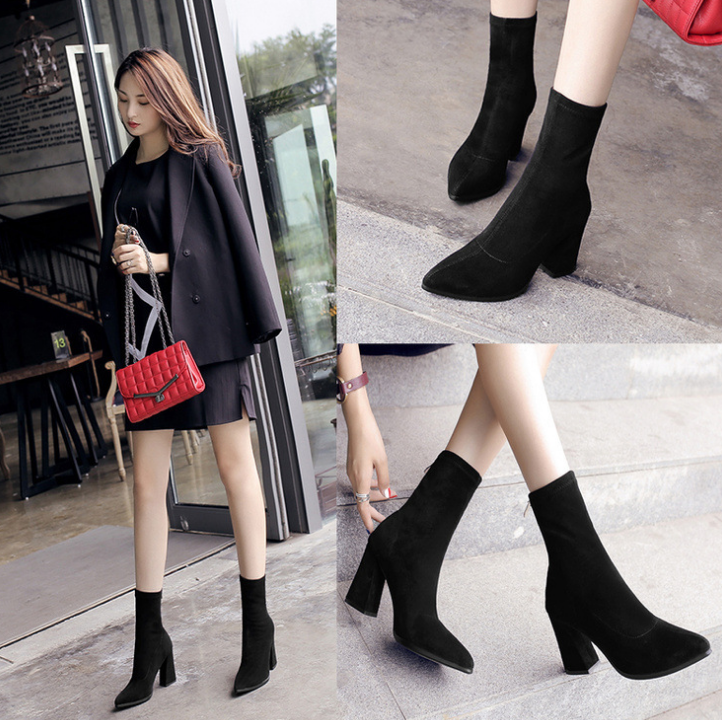 Mid-boots women's thick with autumn and winter new Europe and America wild high heels single boots stretch matte boots Martin boots