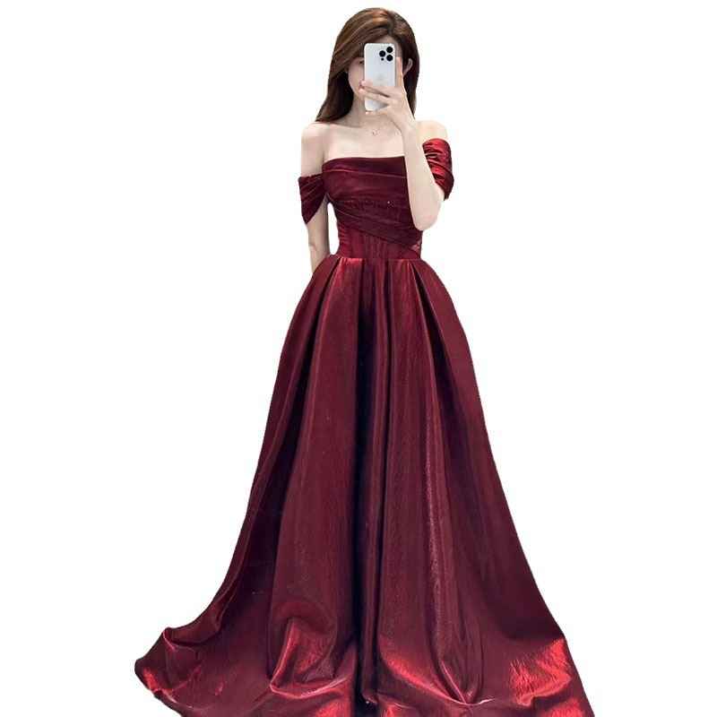 Product information: Color: wine red Waist type: high waist Size: S,M,L,XL,XXL,XS Skirt length: mid-length skirt Fabric name: Polyester Applicable scenario: party Sleeve type: regular sleeve Process: high temperature stereotypes