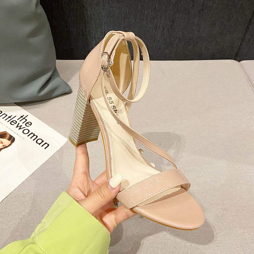 Fabric: PU fabricSize: 35-40Inner lining: PU inner liningHeel height: 9CMSole: Rubber outsoleColor: pinkHow to wear: Buckle