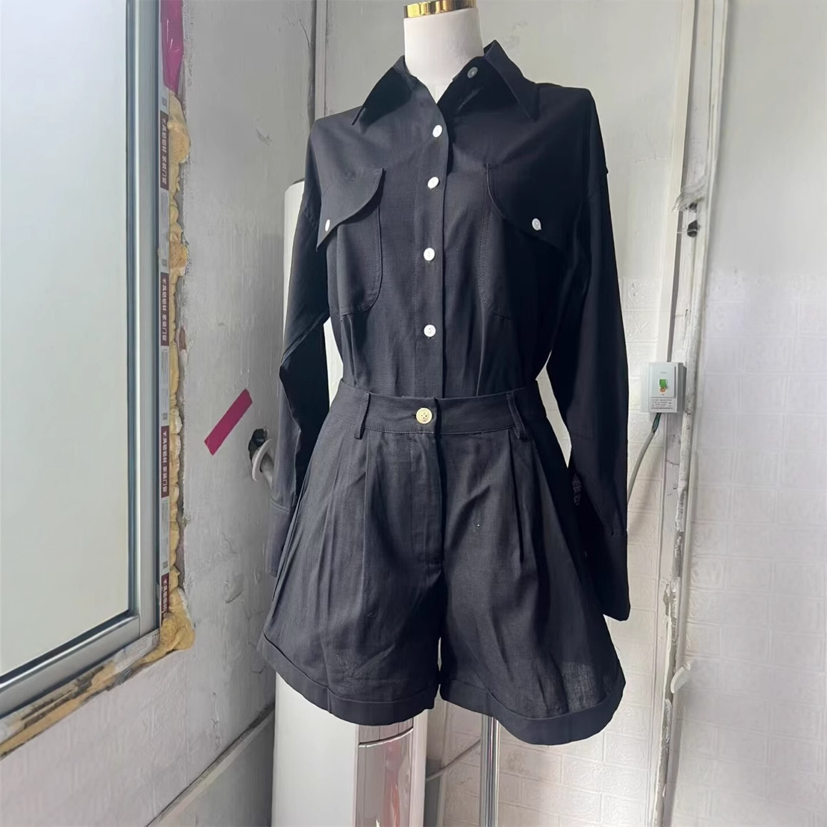 Product information: Fabric name: Cotton Color: white, black, blue Sleeve type: regular sleeve Pants length: Shorts Main fabric composition: Cotton Size: S,M,L,XL Applicable Gender: Female Sleeve length: long sleeve