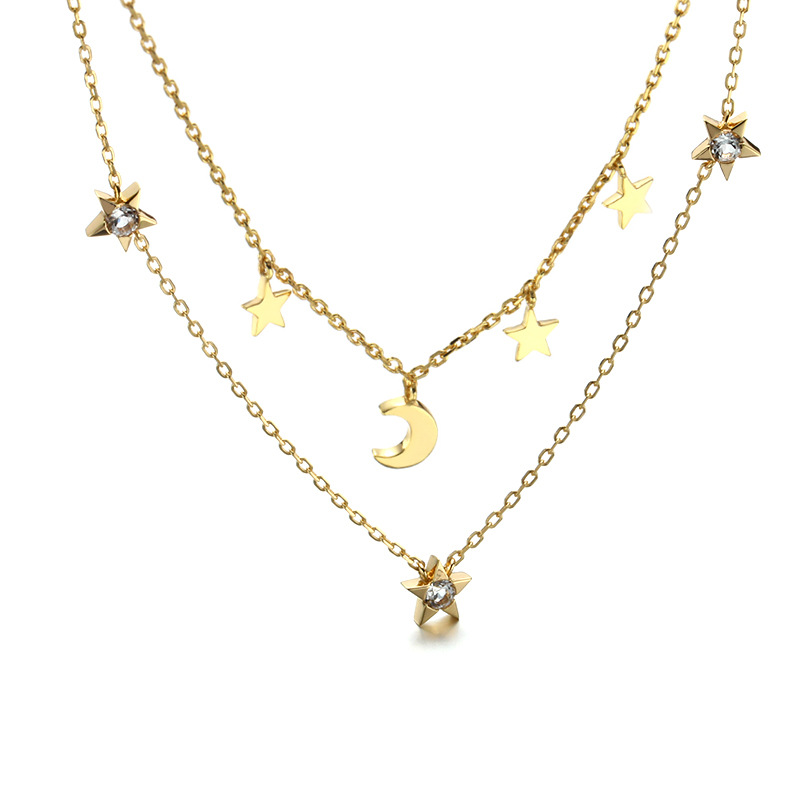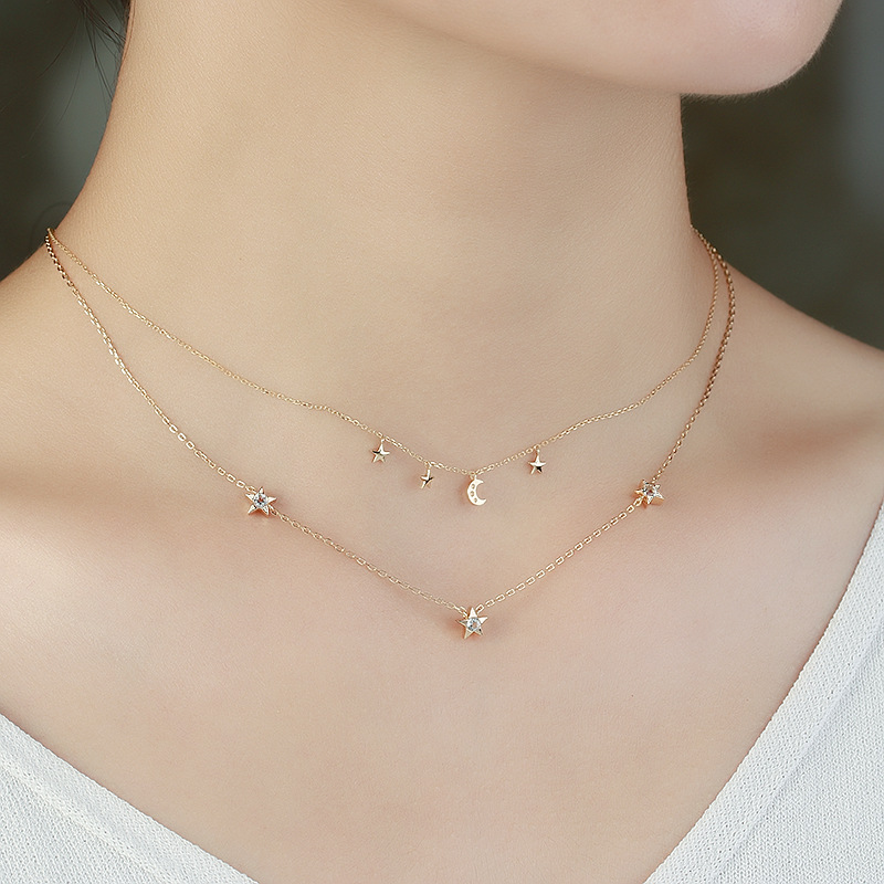 Product Details:Material: silverTreatment process: electroplatingType: NecklaceStyle: Women'sShape: starCircumference: 21cm (inclusive)-50cm (inclusive)Color: Star Moon Double Layer NecklacePackage Contents:Necklace X1