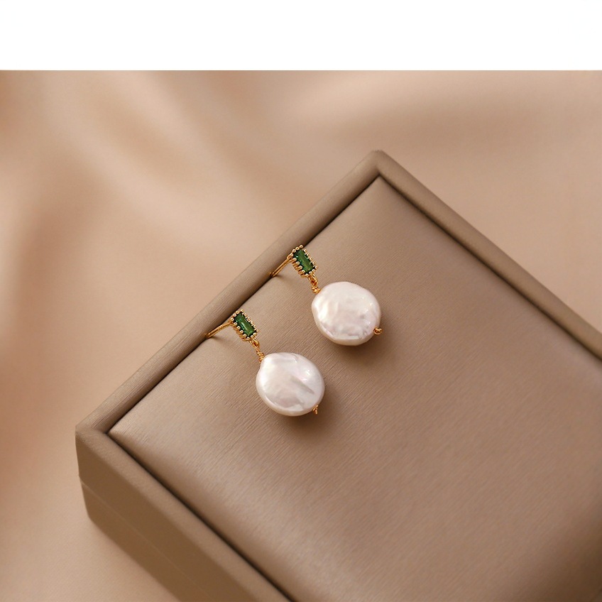 Product information:Treatment Process: Pearl Inlay Color: Emerald Applicable population: Female Material: 925 silver needle freshwater pearl Shape: Geometry Style: fashion OL