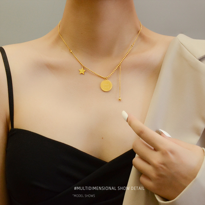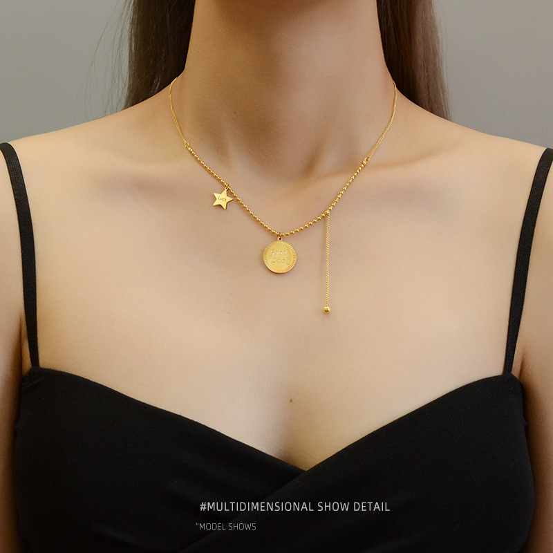 European and American INS Queen Elizabeth portrait head round card pendant necklace female collarbone chain titanium steel jewelry