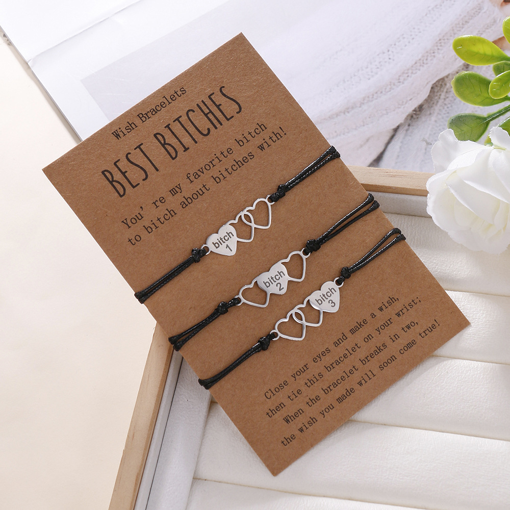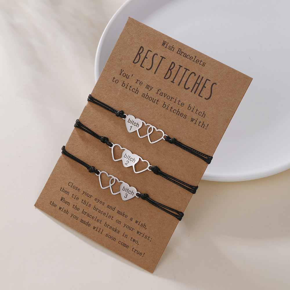 Best Bitch Card Bracelet Creative Stainless Steel Love Woven Bracelet