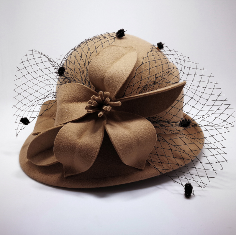 Color classification: Mesh flower woolen hat camel, mesh flower woolen hat black