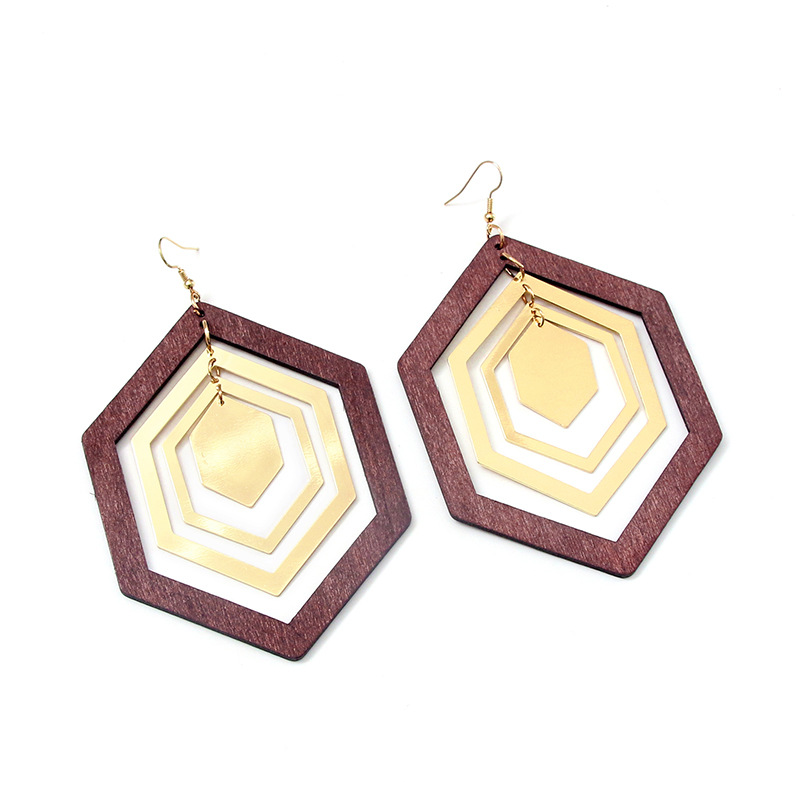 Retro Elegant Wood Hexagonal Geometric Earrings