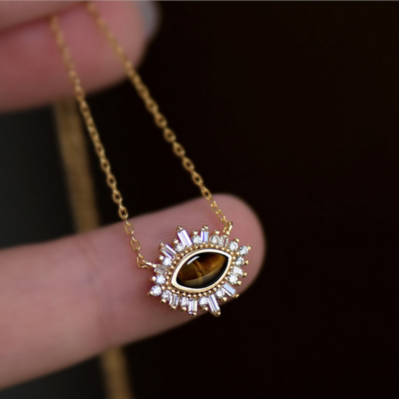 Pendant: approximately 1.4 * 1.2cm Tiger Eye Stone approximately 0.9 * 0.5cm